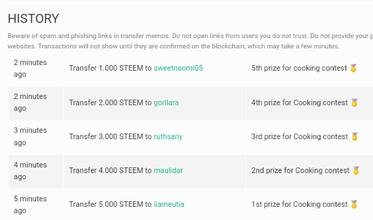 I welcome all the winners.I have completed the distribution of prizes to all the winners.Below is a screenshot as proof of that.