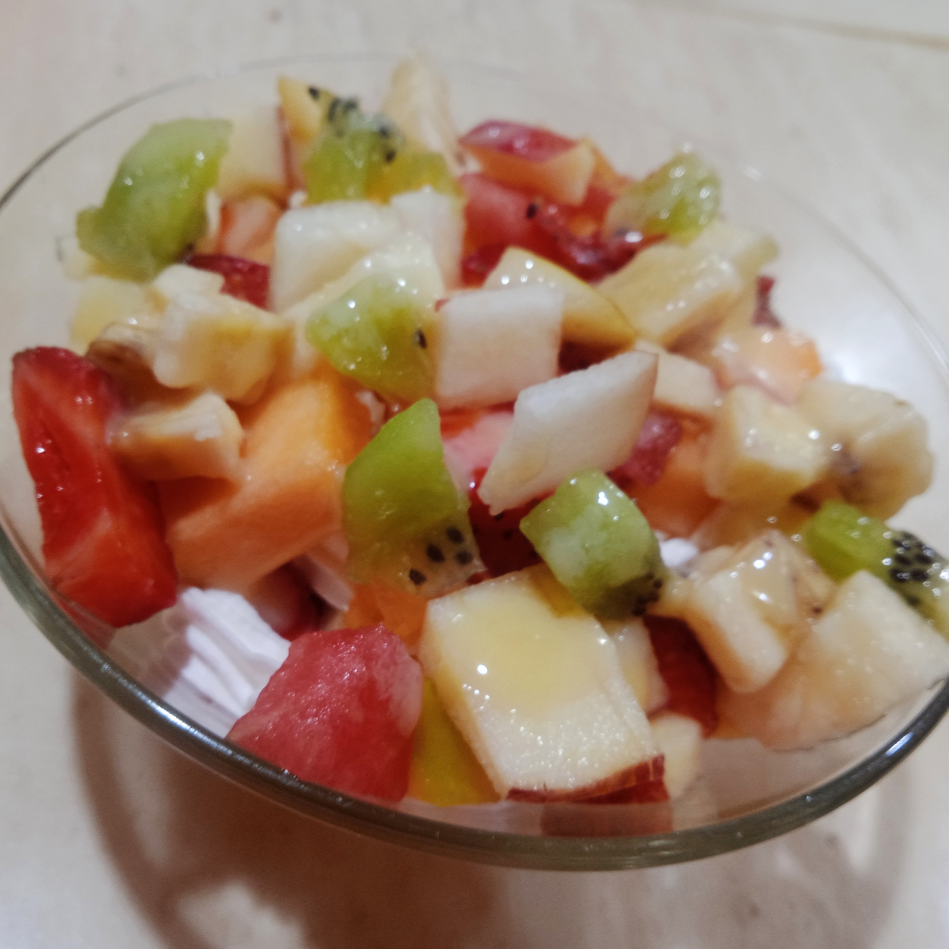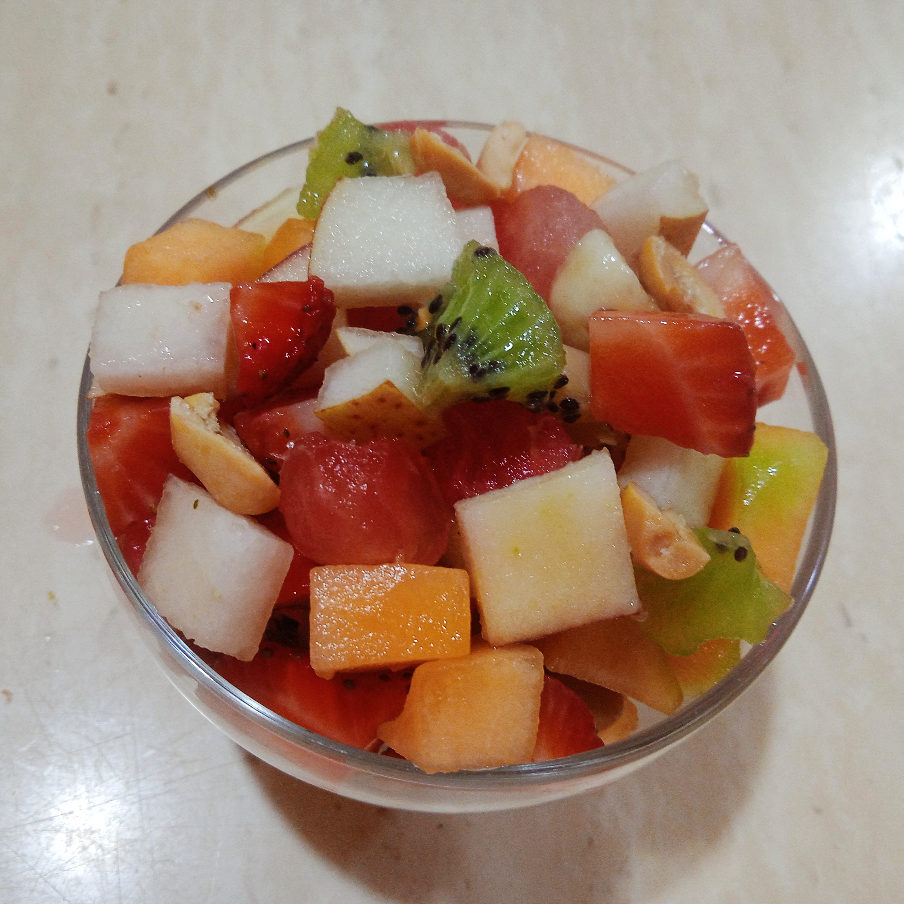 Fruit salad is a fresh, versatile, and nutritious dish enjoyed around the world. Its ability to adapt to different cultures and preferences makes it ideal for breakfasts or snacks. Core fruits like oranges or tangerines add a citrusy touch, melon and grapes bring sweetness, apples offer crunch, while pineapple and kiwi add a tangy flavor. Pears contribute softness, and strawberries, mangoes, peaches, and berries provide a balance of sweet and tart. Adding a dressing can enhance the flavor—options include yogurt, condensed milk with whipped cream, orange or lemon juice with honey, or even a light honey-lemon vinaigrette. For extra texture and nutrition, nuts (like almonds or walnuts) and seeds (such as chia, flax, or sunflower seeds) are great additions. This combination of fruits, textures, and flavors makes fruit salad not only delicious but also a wholesome choice.