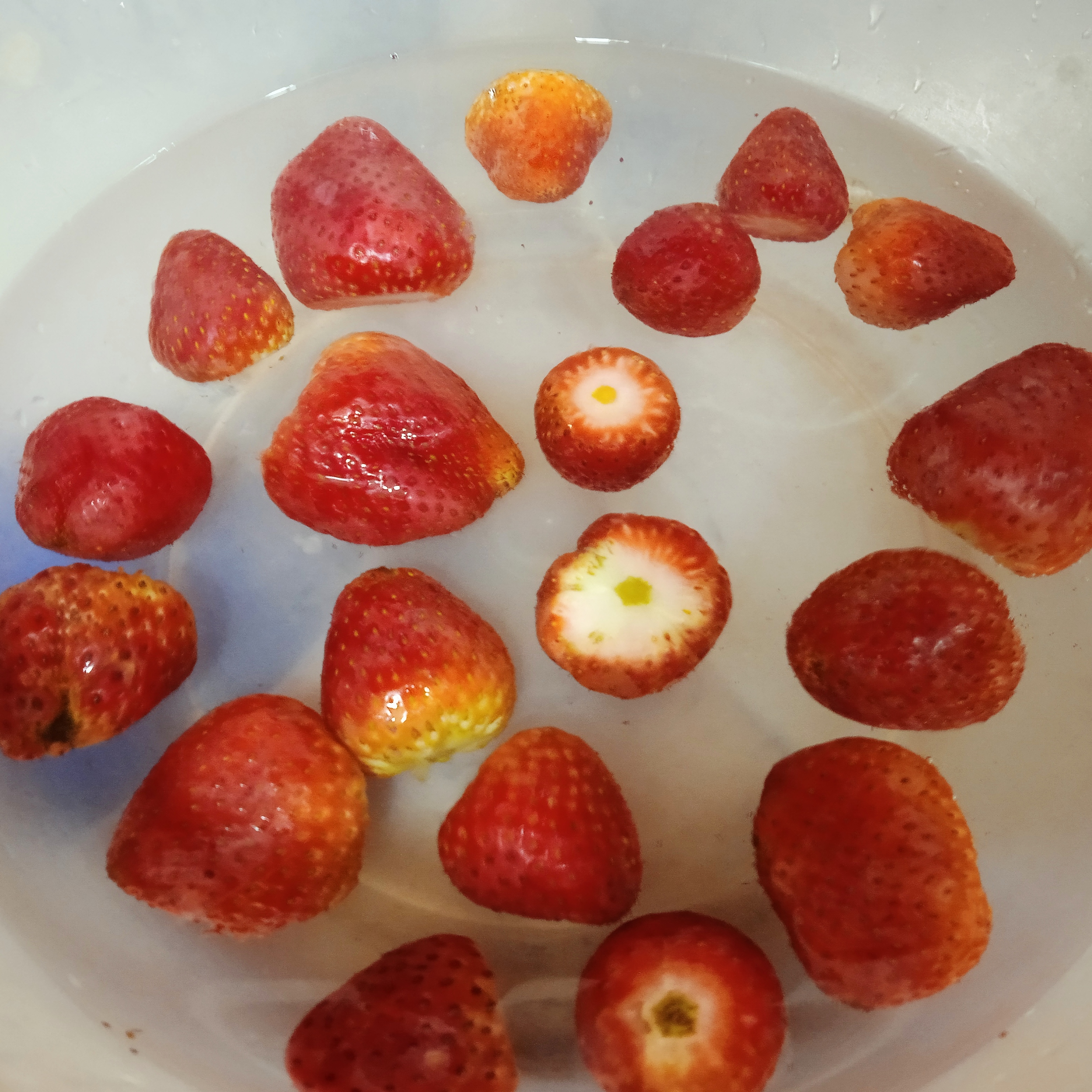 ✓ Empezamos con la higiene de nuestras frutas. Para ello, las lavamos bien con abundante agua, les quitamos los tallos y las pelamos.