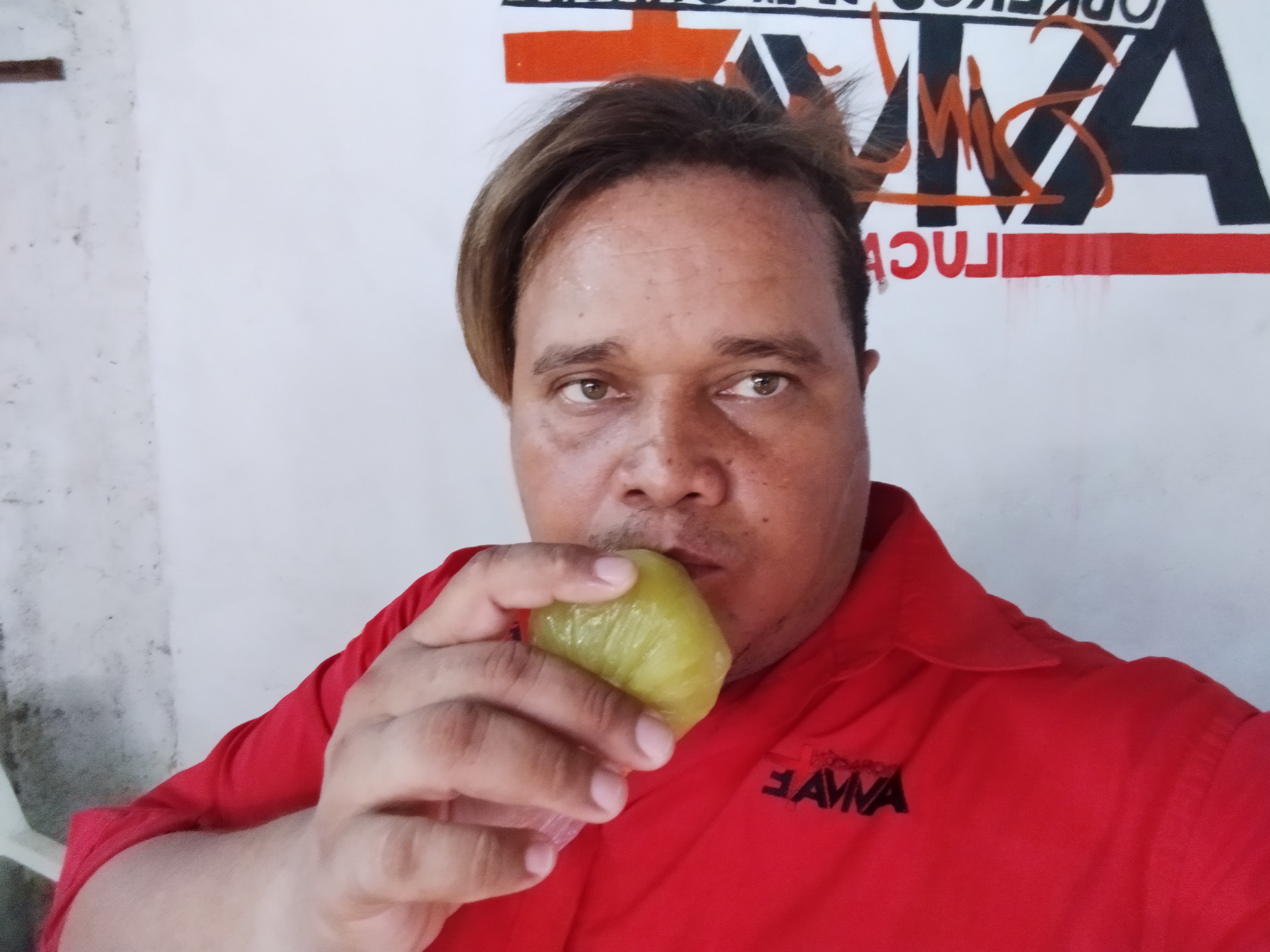 Aunque no estamos en temporada de mango mi nieto encontró en la mata que está ubicada en el terreno de la iglesia, 2 mangas y con esta hemos preparado el día de hoy 12 helados para venderlos el día de mañana después del Servicio Dominical en nuestra congregación Avivamiento Mundial Higuerote, el motivo de su venta es porque el está reuniendo para comprar un teléfono celular.