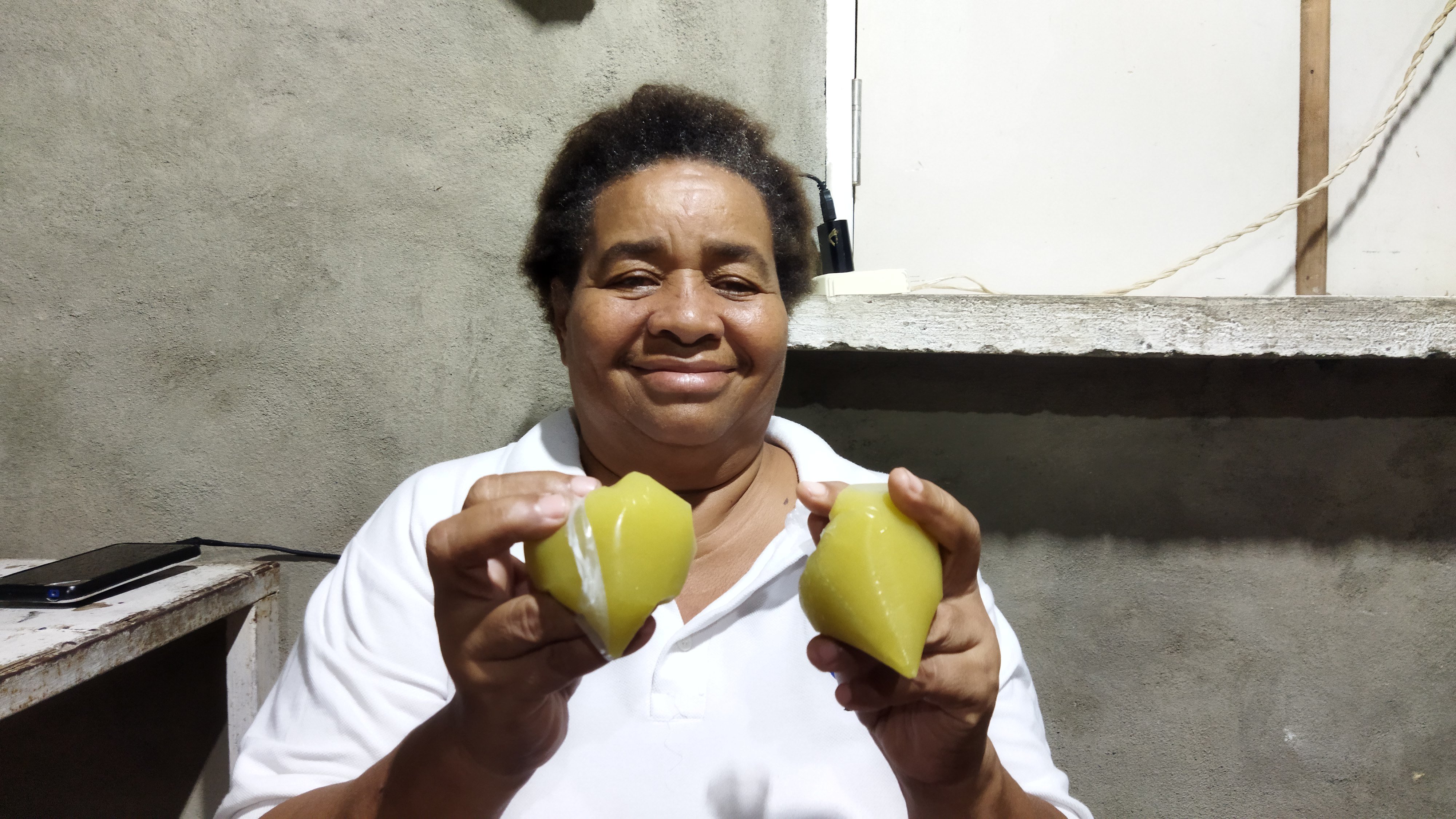 Les cuento estoy ayudando a mi nieto Isaí Romero de 11 años de edad, que un día me dijo abuela quiero vender y él tenía unas guanábanas que había traído de la mata que está en su casa, y decidimos comenzar hacer helados de tetas conocido popularmente.