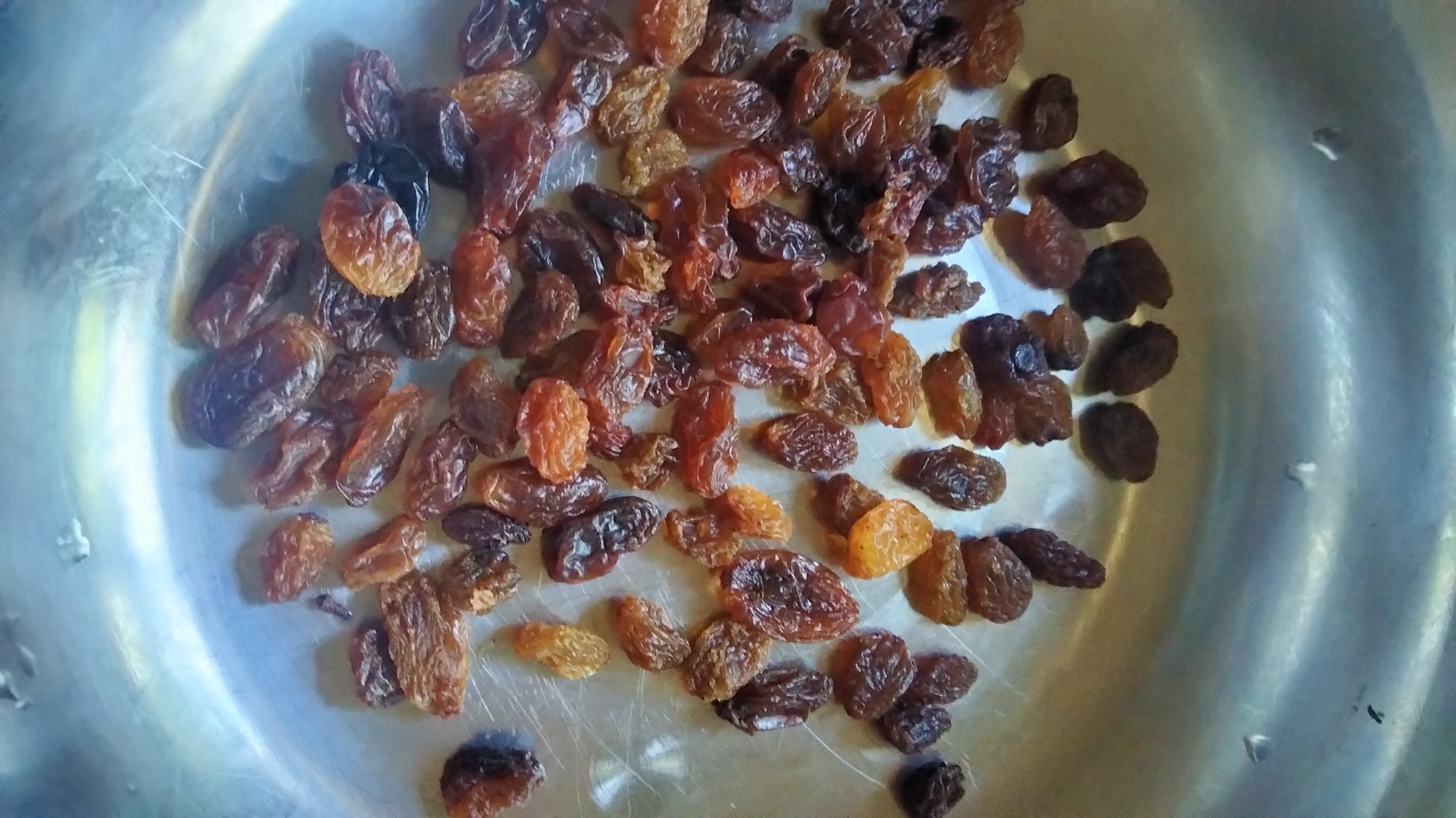 After that,I added 500ml of water to reduce the thickness of the mixture.I mixed the mixture using a blender.Also, I added dried grapes to the mixture as well.