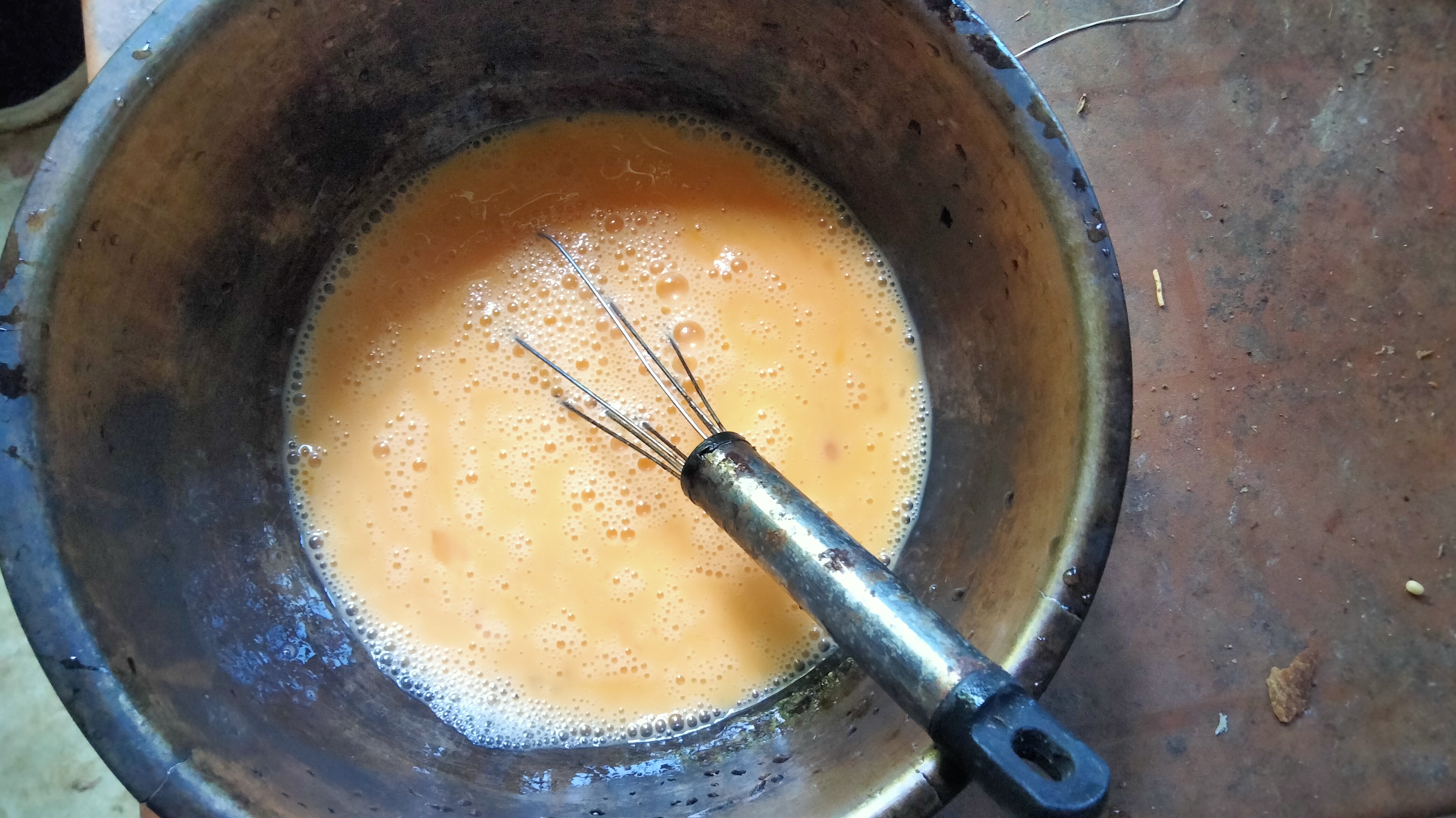 Next, I mixed 510g of milkmaid (Condensed milk) in to the egg mixture and continued mixing