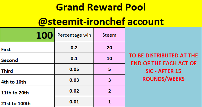 Before explaining more on this one, let me make this clear that this Bonus will only be paid after the completion of the First Act of Steemit Iron Chef.