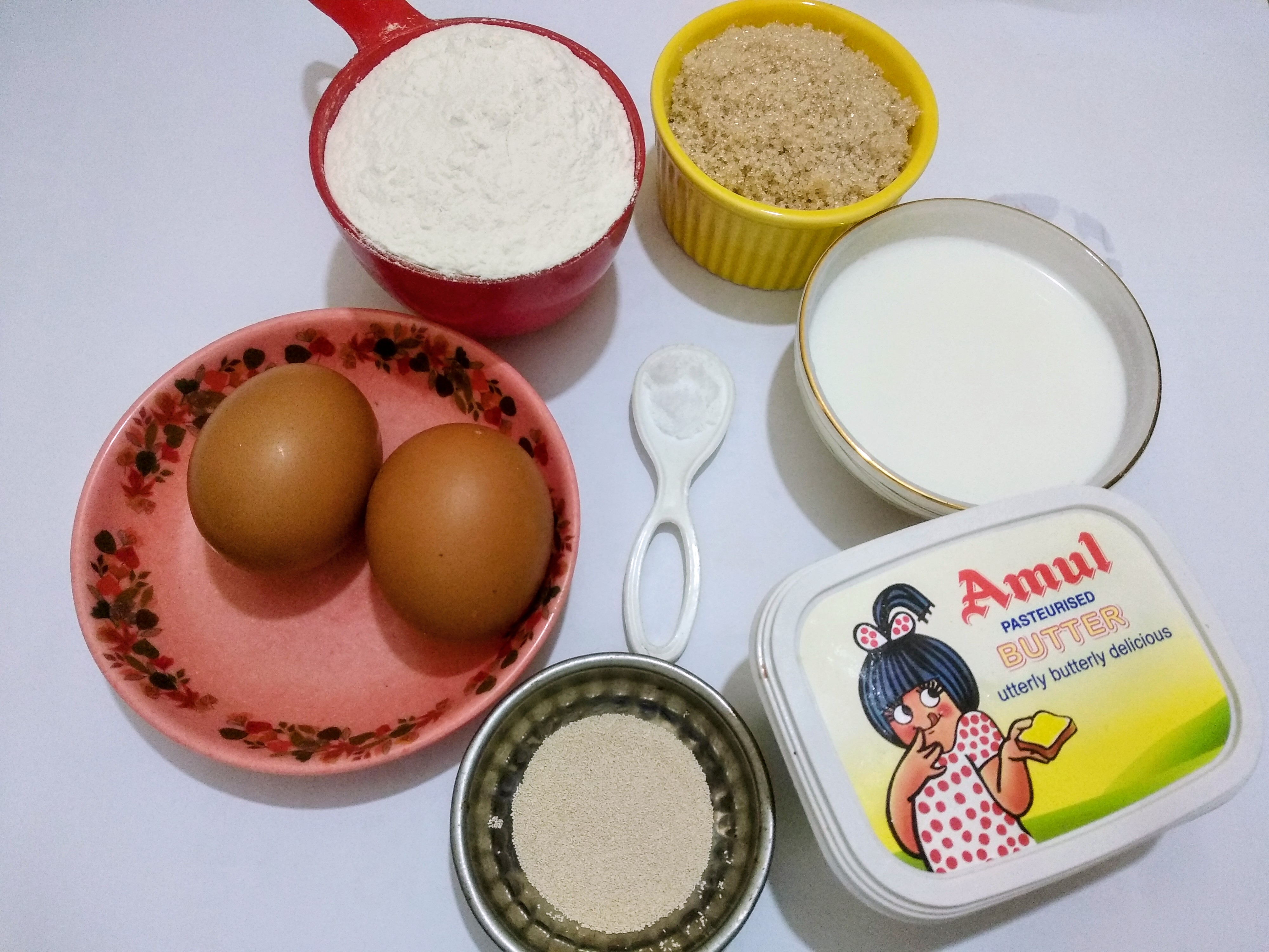 All the ingredients used to make sweet bun are :