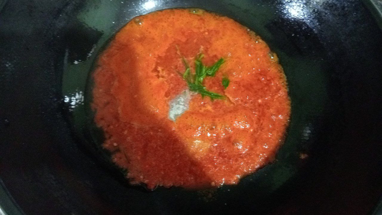 Setelah itu, aku blender cabai, bawang merah, bawang putih, dan kemiri. Bumbunya aku tumis sampai harum, ditambah daun jeruk biar wangi banget