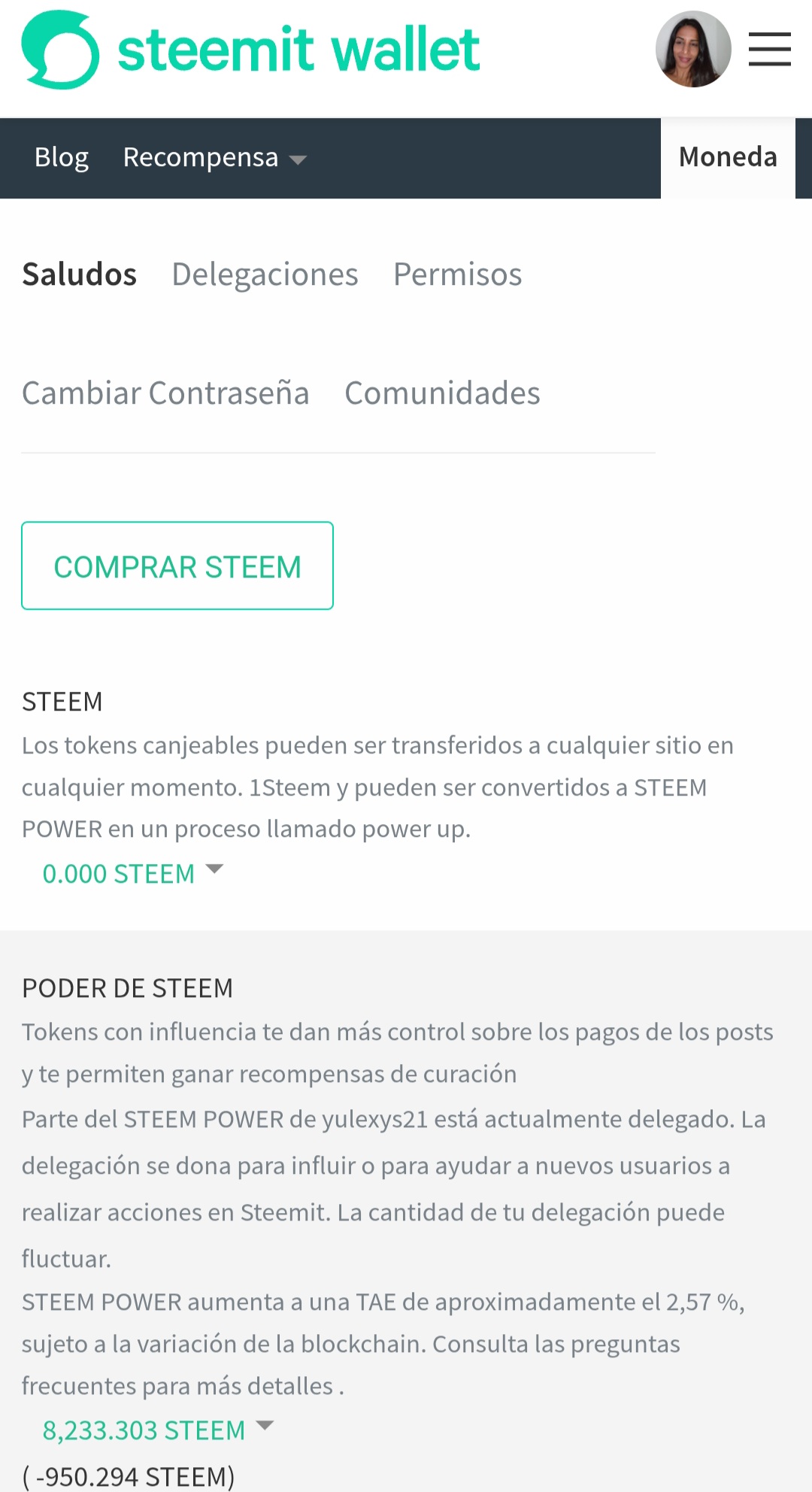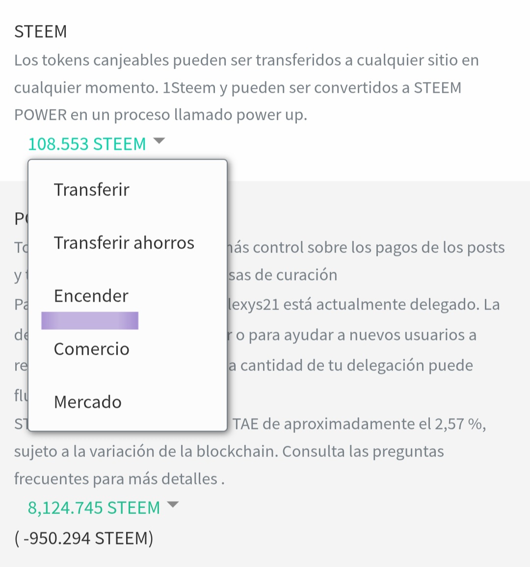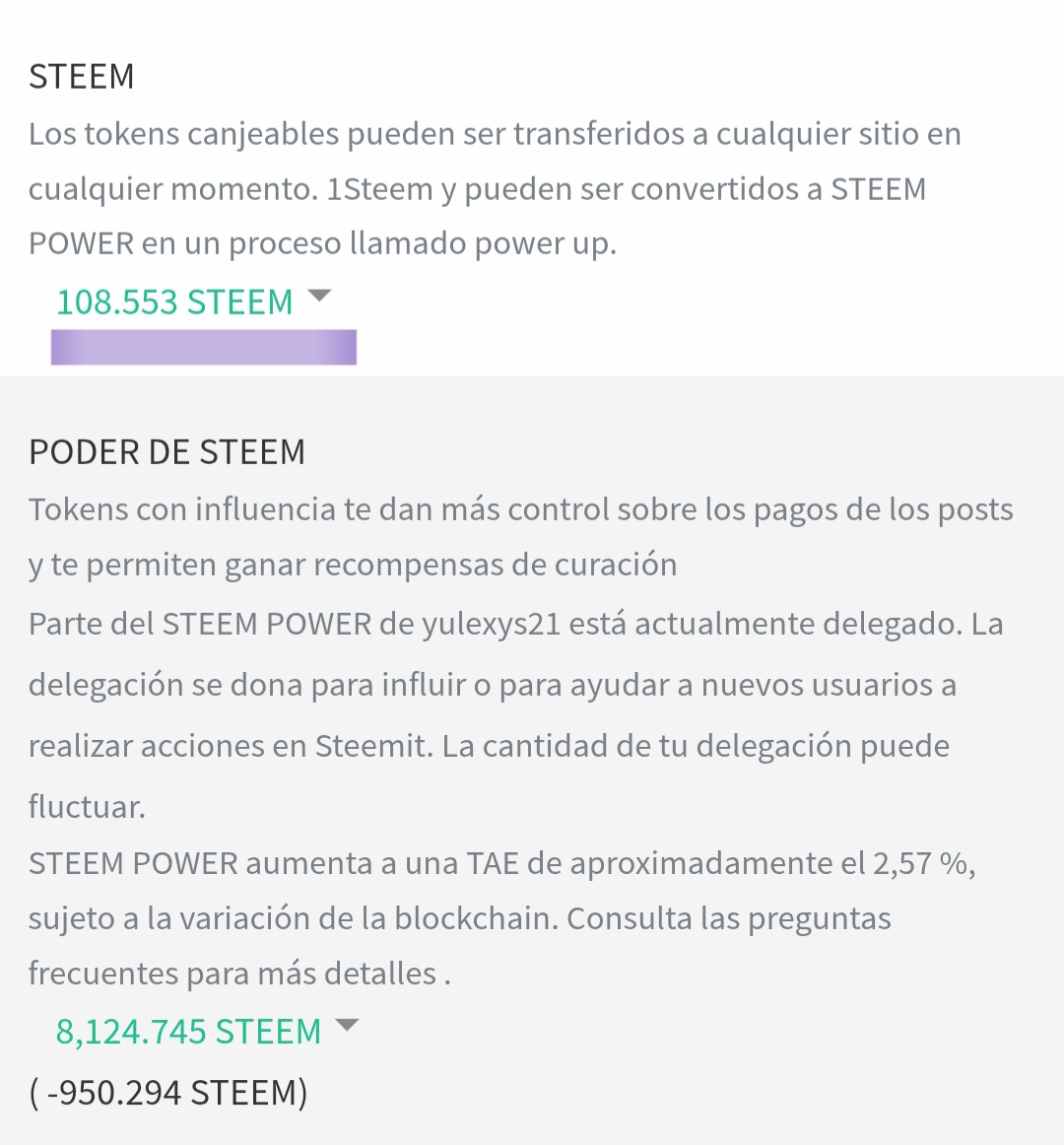 Como primer paso tuve que ingresar a la billetera, luego inicie sesion y tenia disponibles 108.553 tome el capture de pantalla, tambien me refleja en mi billetera 8.124.745 de steem power antes de realizar mi proceso del encendido, de esta manera voy a encender 108 steem.