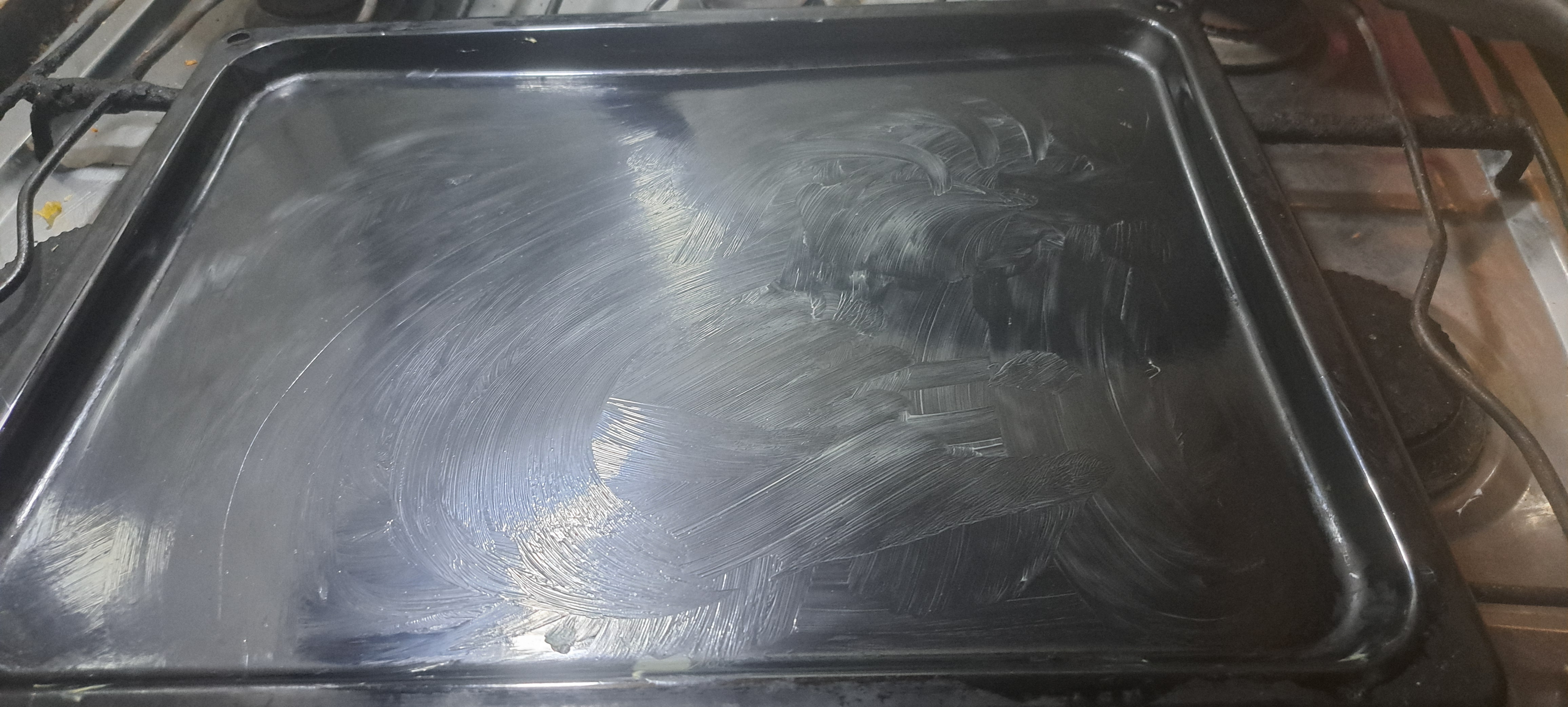 Barnizamos la bandeja con mantequilla, antes de formar las galletas sobre la superficie de la misma