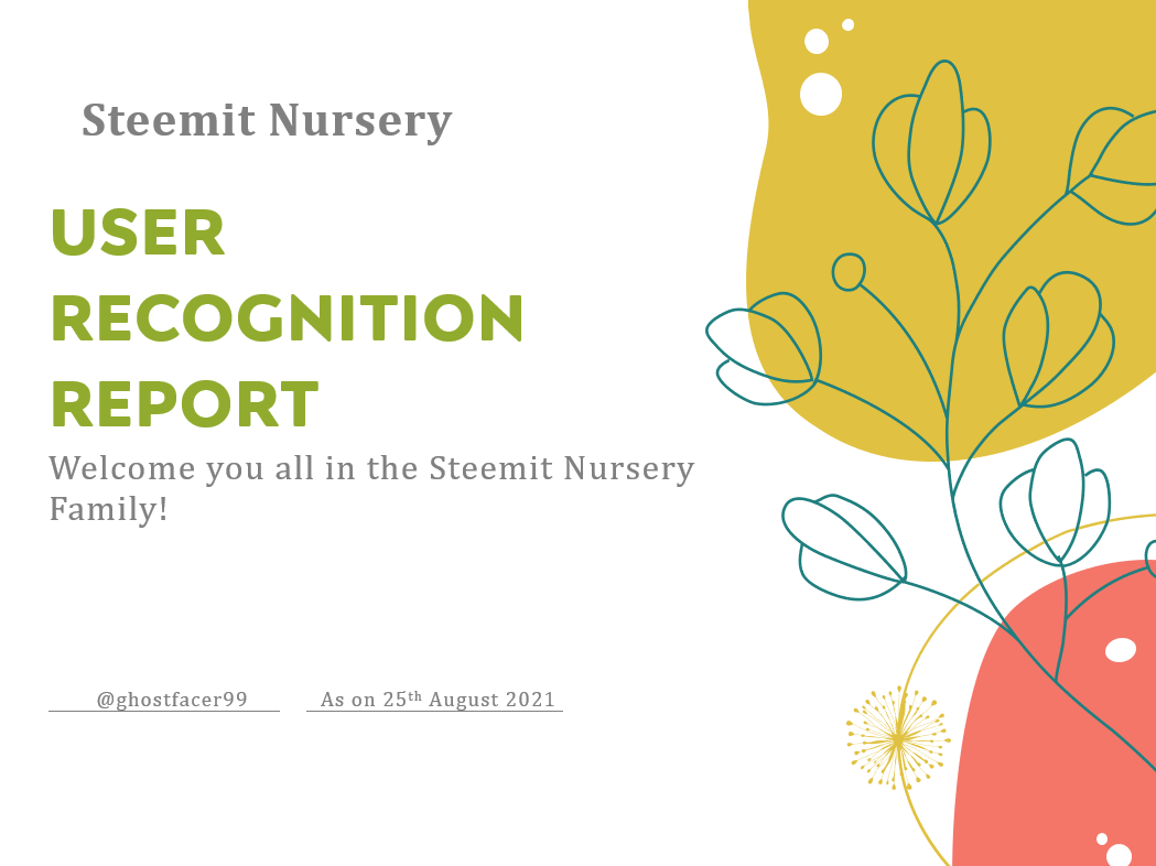 Steemit Nursery User Recognition Weekly Report | August 25, 2021