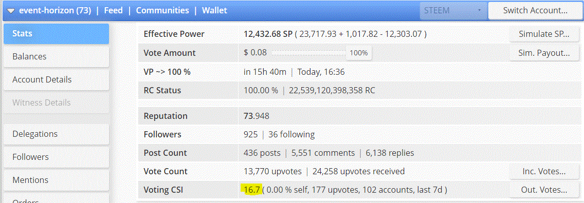I try to maintain my CSI above 15 and at the time of writing this application, my voting CSI is 16.7.