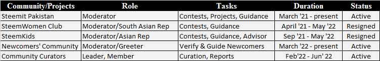 - I am actively curating, commenting, advising, guiding, and organizing contests for Steemians for more than a year. Below is the timeline of the major roles and my experience on Steemit.