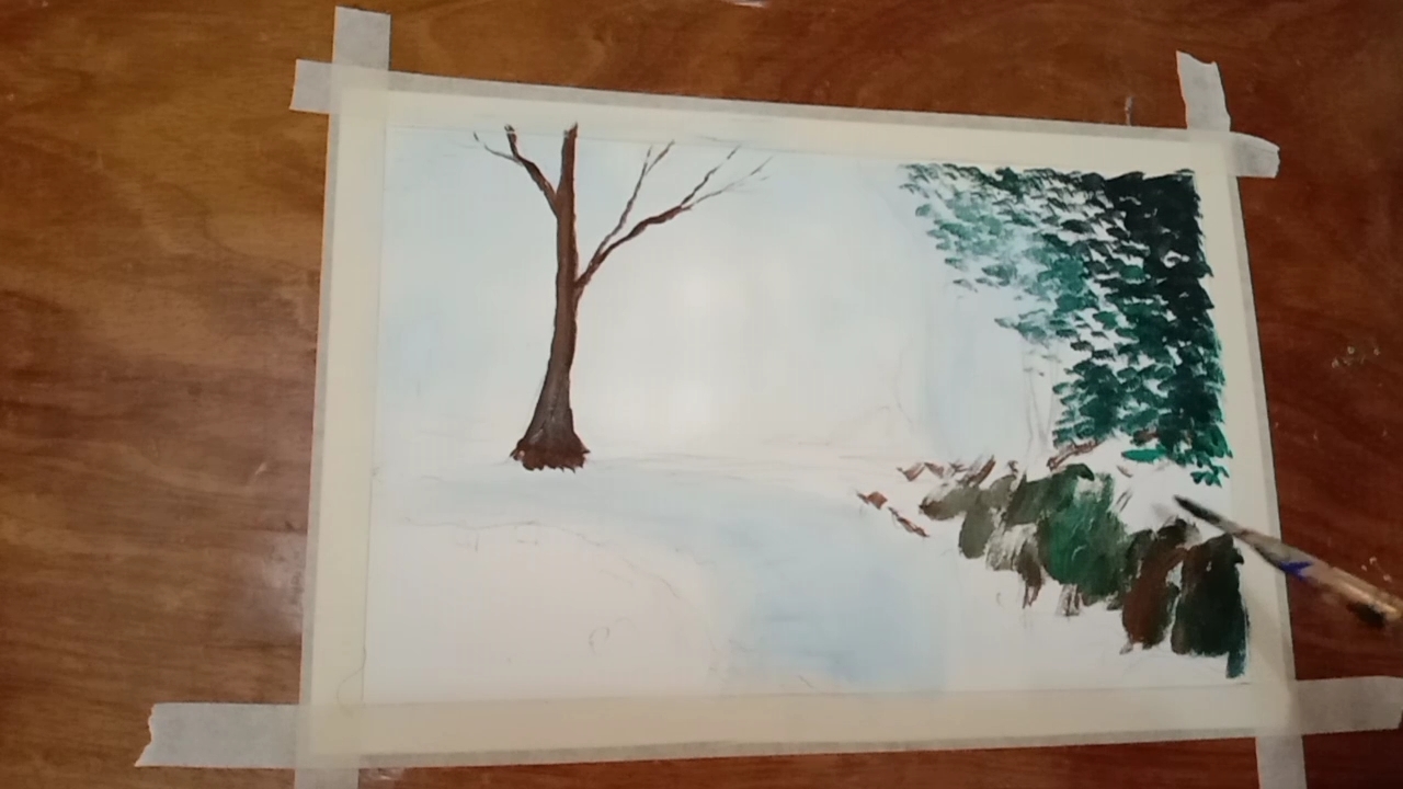 Applying distance color using titanium white and small amount of cobalt blue.