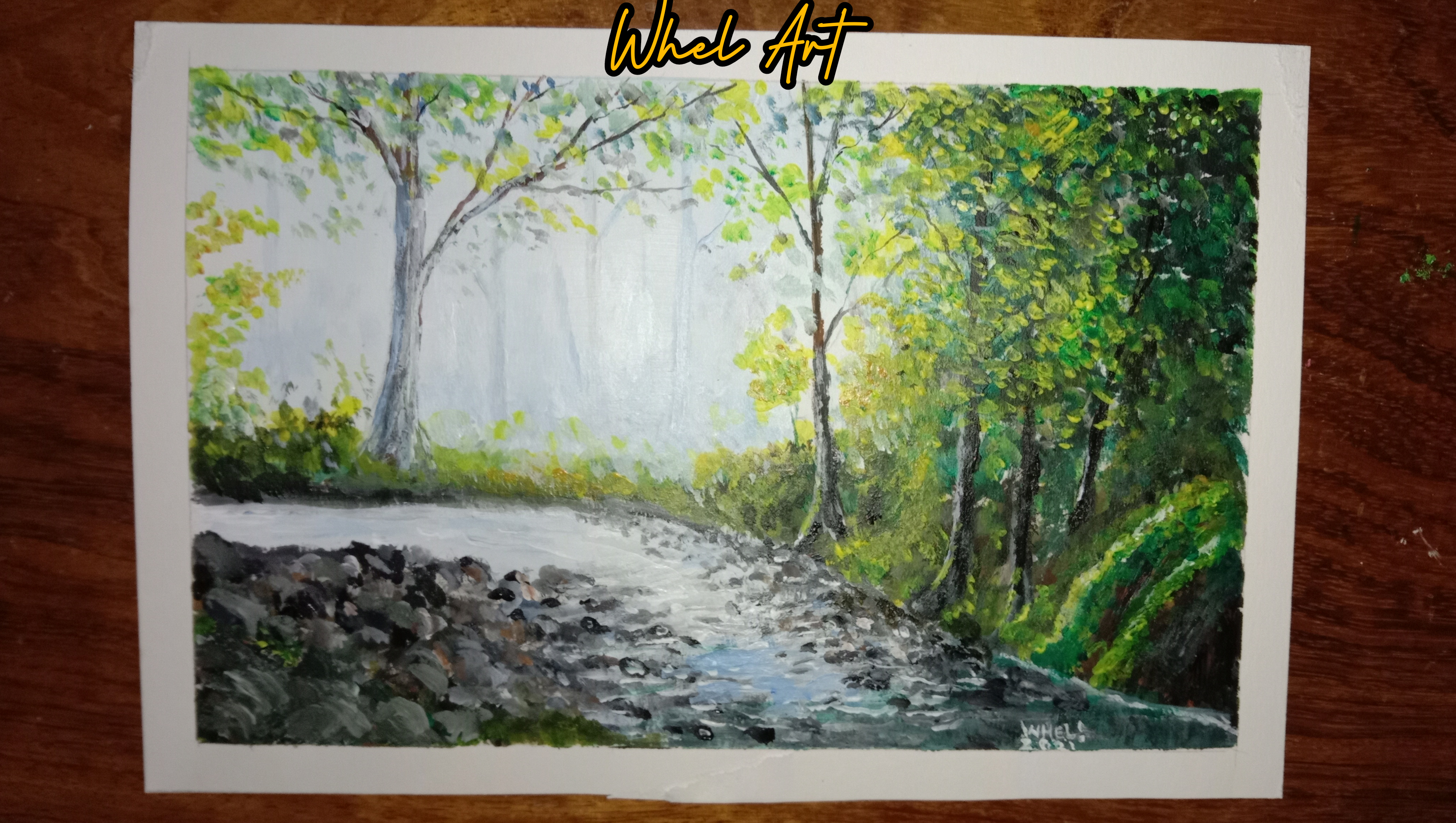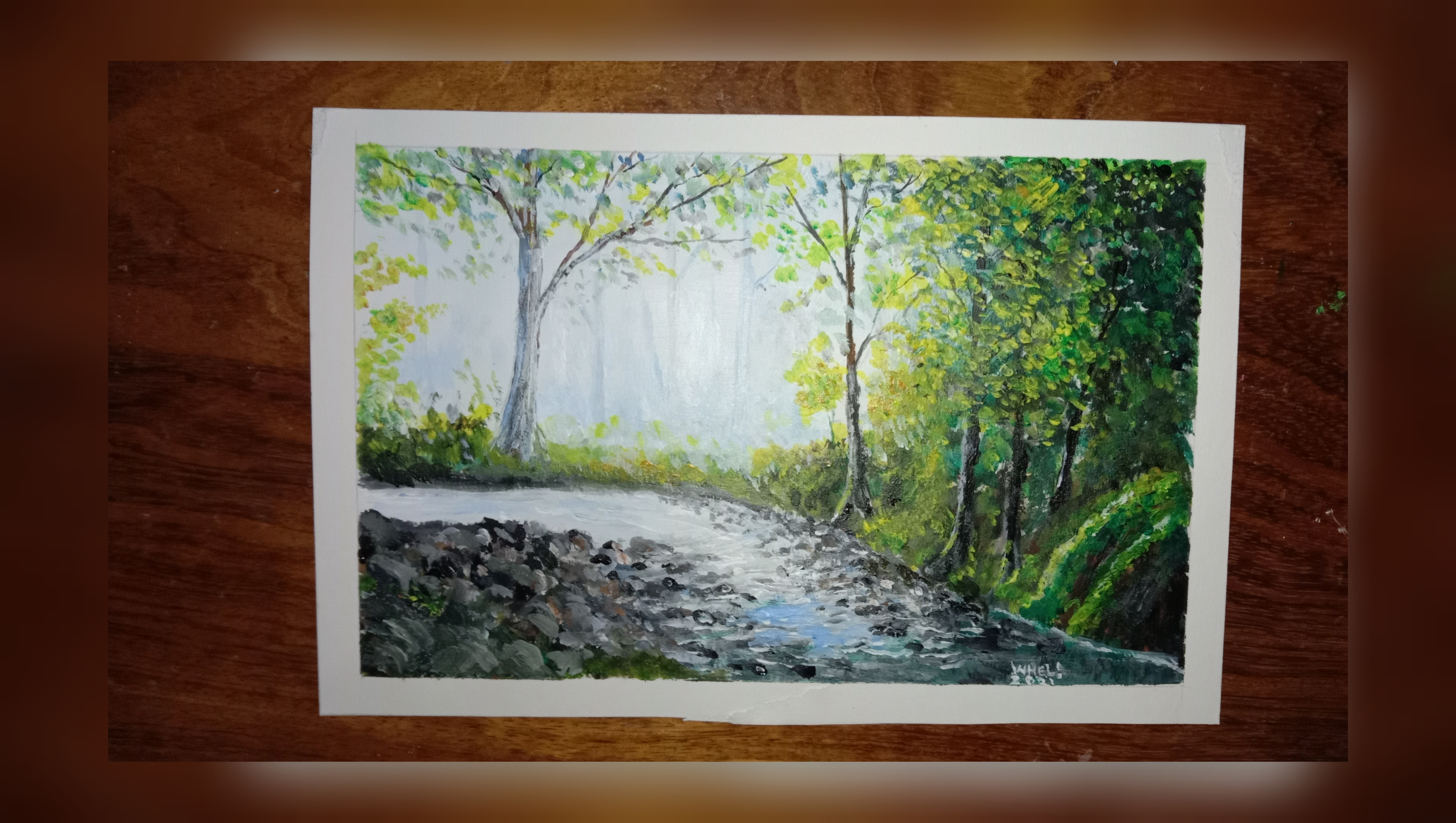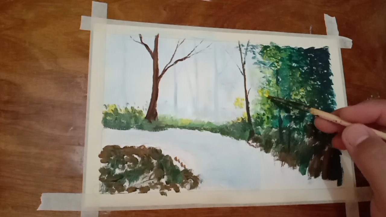 Another fun landscape painting I did today. As we can see the misty distance background is lovely because the muted and softer edges of the distance it appear misty and foggy. I’ve enjoyed painting with this scenery because mist adds calm atmosphere. The techniques that I’m showing here can work with acrylic and oil paint.