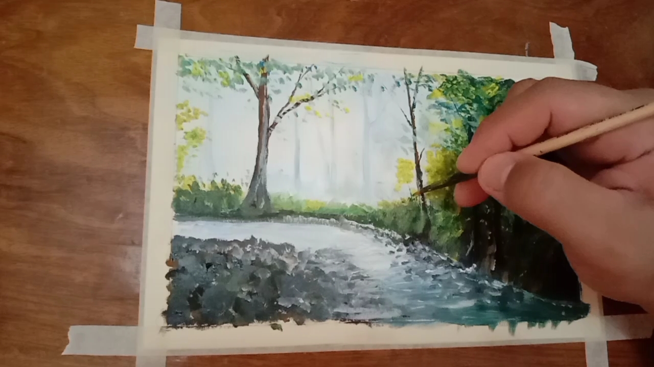 fot the highlights basically for this painting I used lemon yellow, small amount if brilliant green and a touch of white.