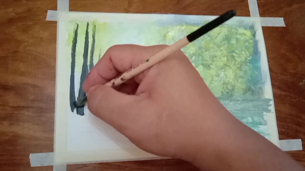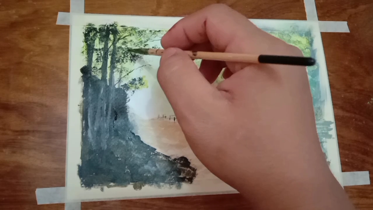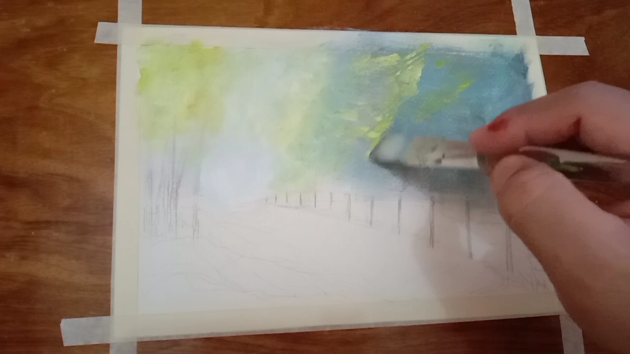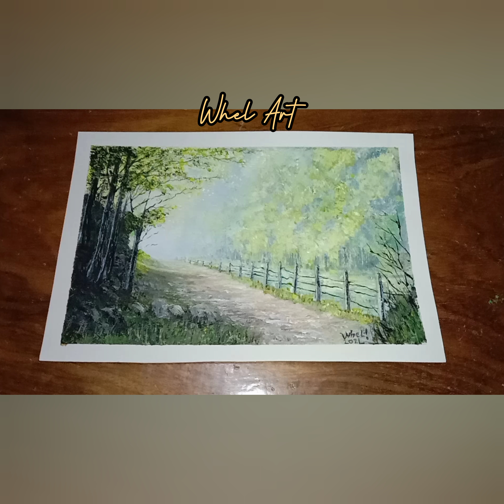 Summer landscape painting is the representation of natural scenery art. The misty road is easy to create applying the 'wet on wet" technique by blending two colors, creating the softening edges and the layering a sense of depth. The mixture of paint attract and generates attention.