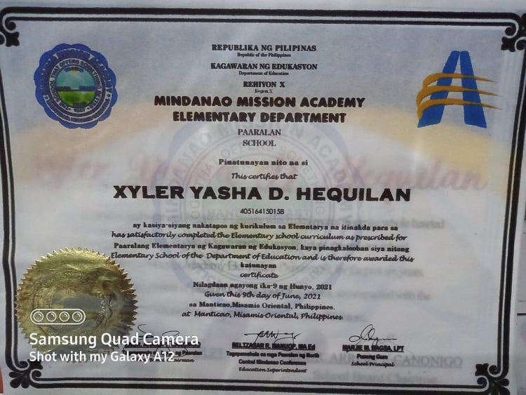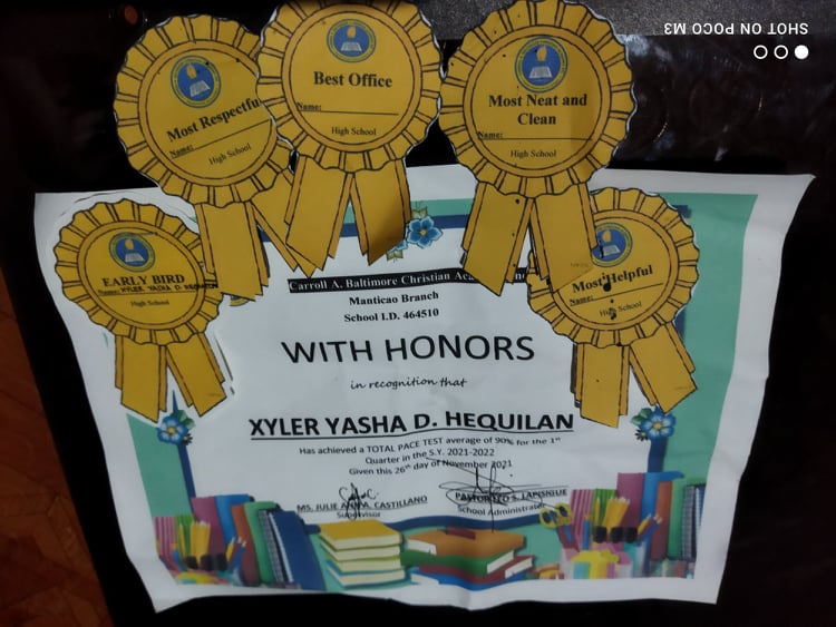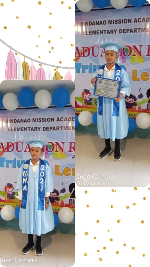 In June 9, 2021 he finally graduated as one with a high honor. Pandemic at that time the reason that they come one by one in the school according to the time the teacher tells them so they wasn't able to take class picture and enjoy each other's moments of success.