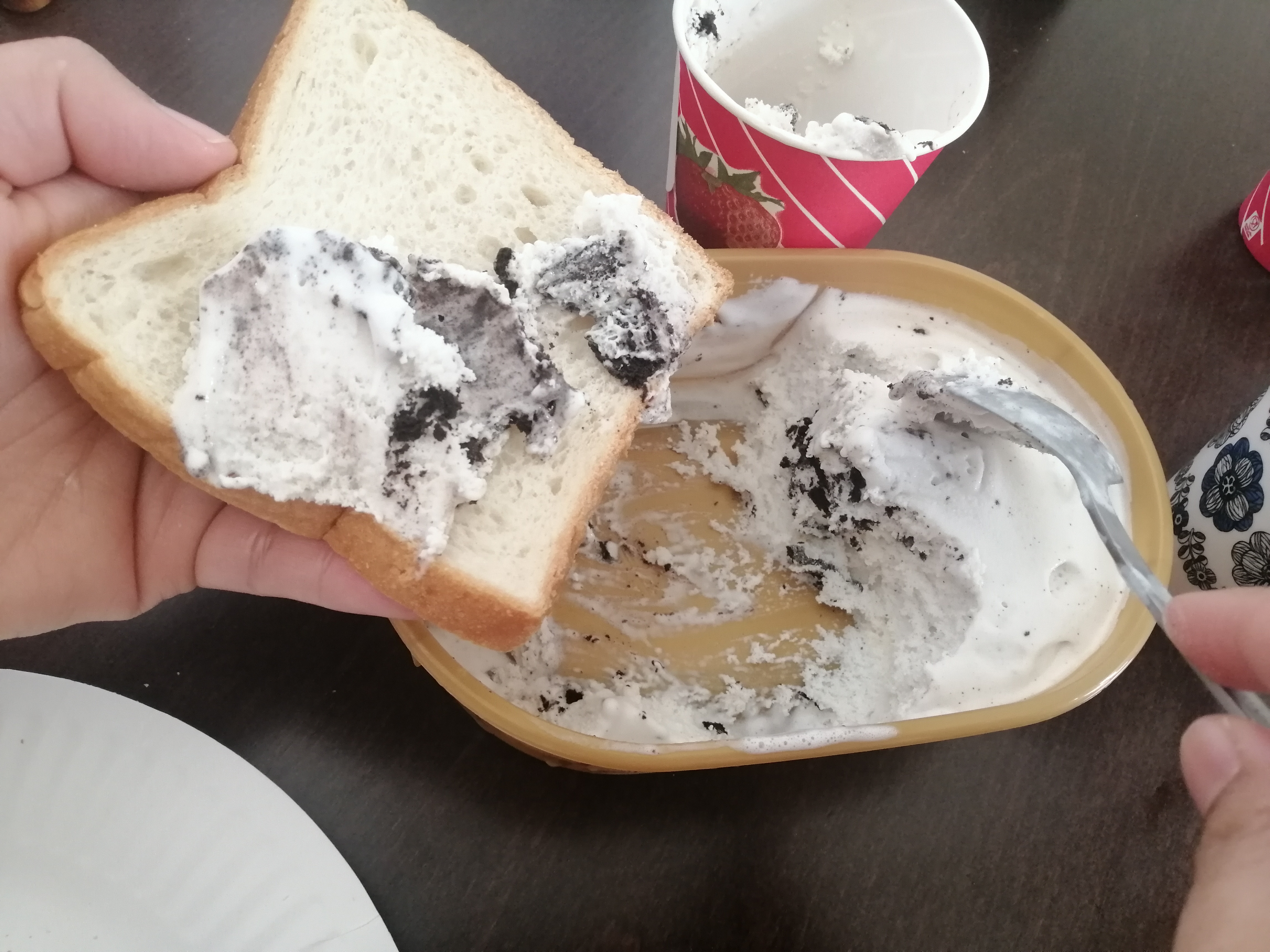 Yes, what you see and what you read is correct! Ice Cream on bread!