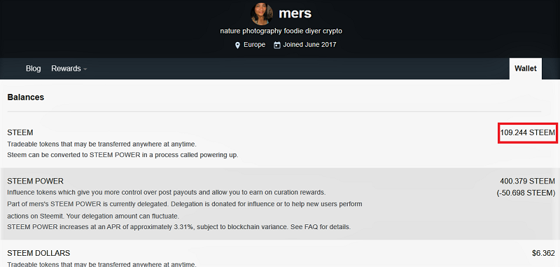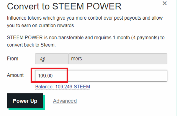 As you can see in the image above, my Steem Power has a balance of 400.379 Steem. Now I have powered-up the 109 Steem. By powering-up, this will help me get more rewards for my contents, the higher the SP, the more reward value my post will be whenever it gets curated. By staking Steem, other users will also benefit on this with regards to their rewards.