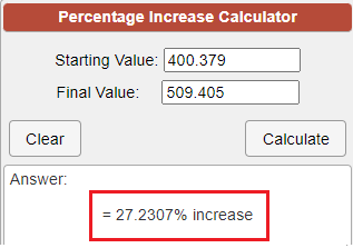 PERCENTAGE: 27.2307% increase