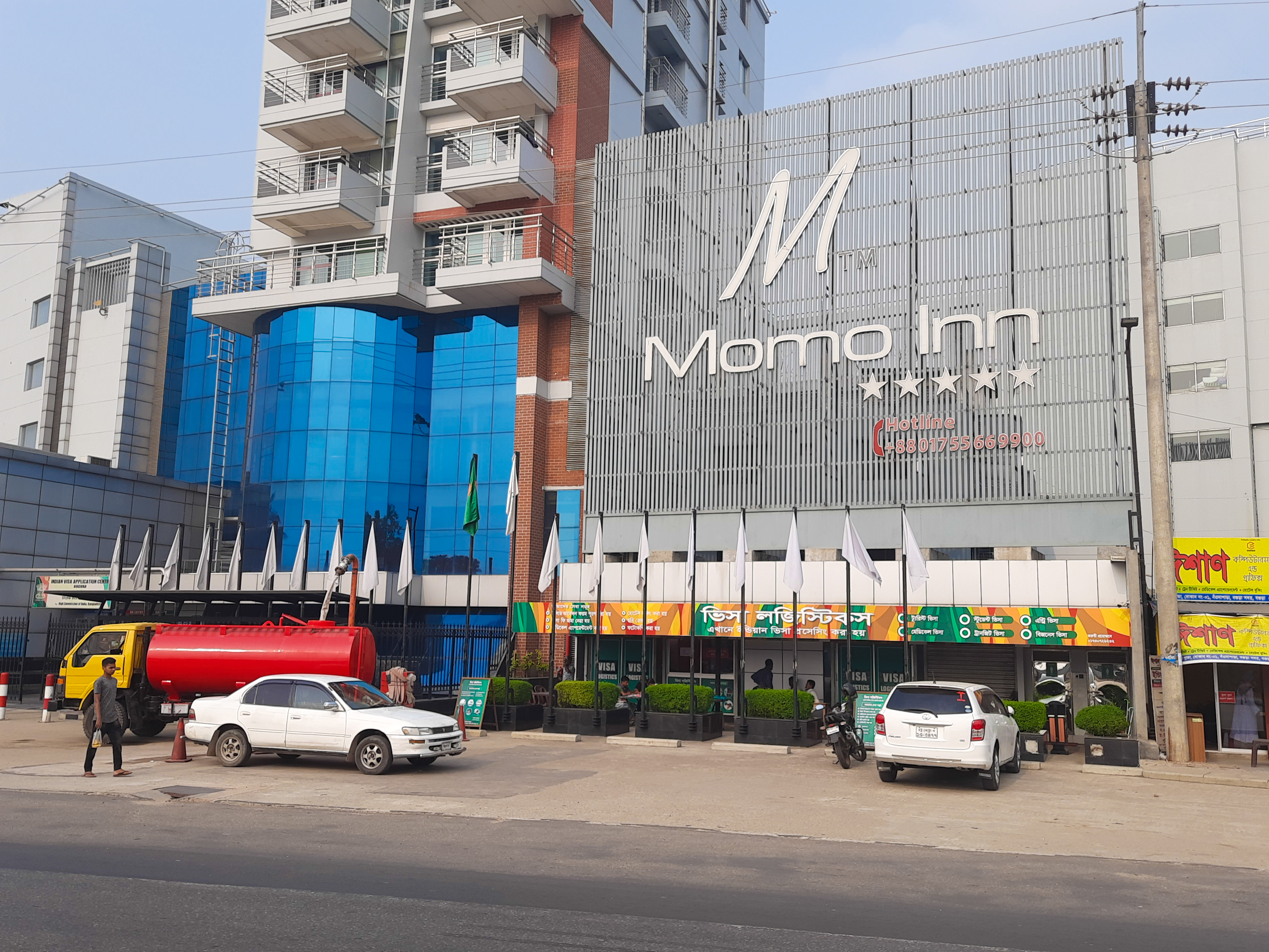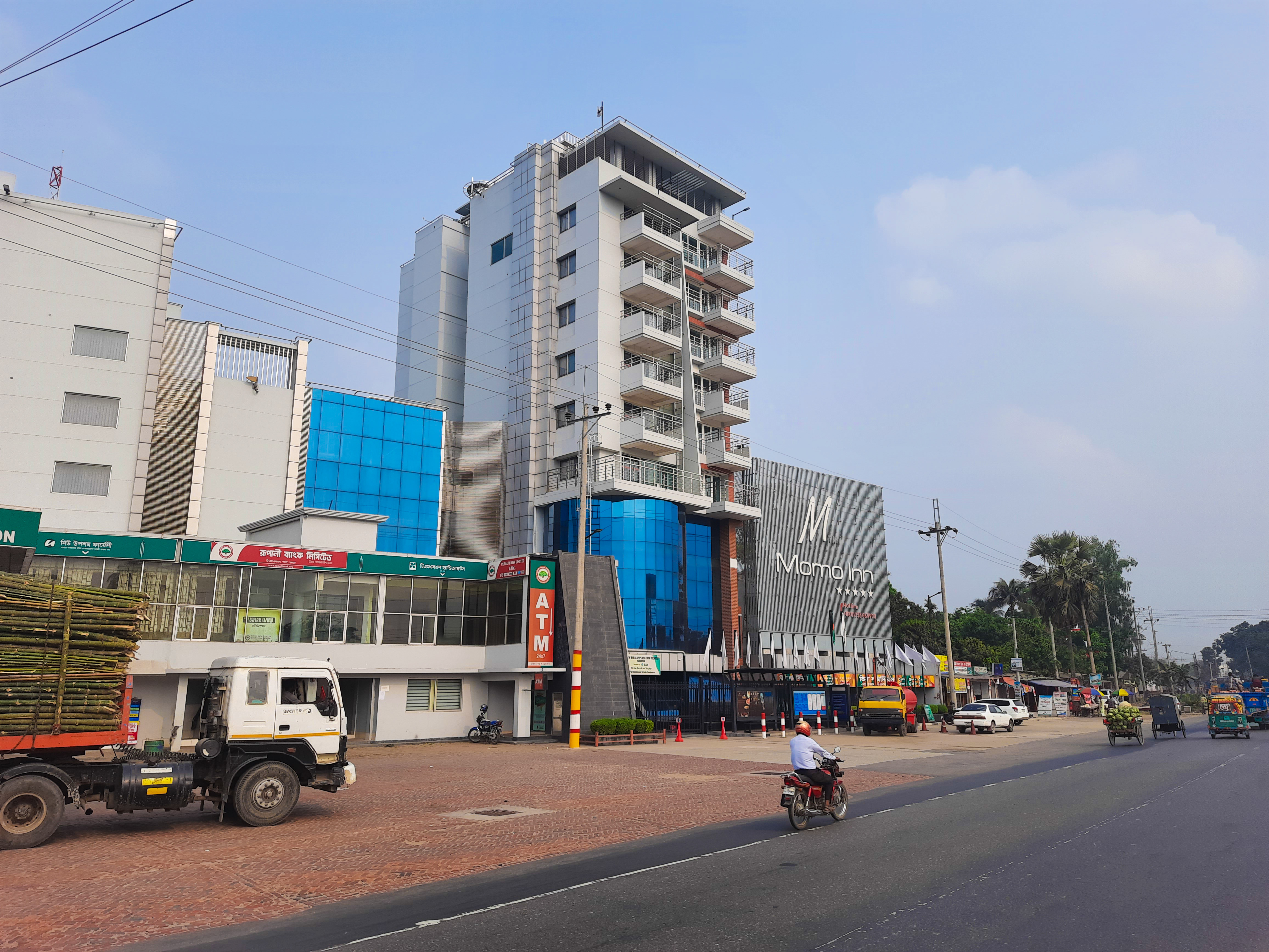 A beautiful building with 10 floors of Momo Inn Five Star Hotel can be seen at one end of the road of Bogra Rangpur Highway.