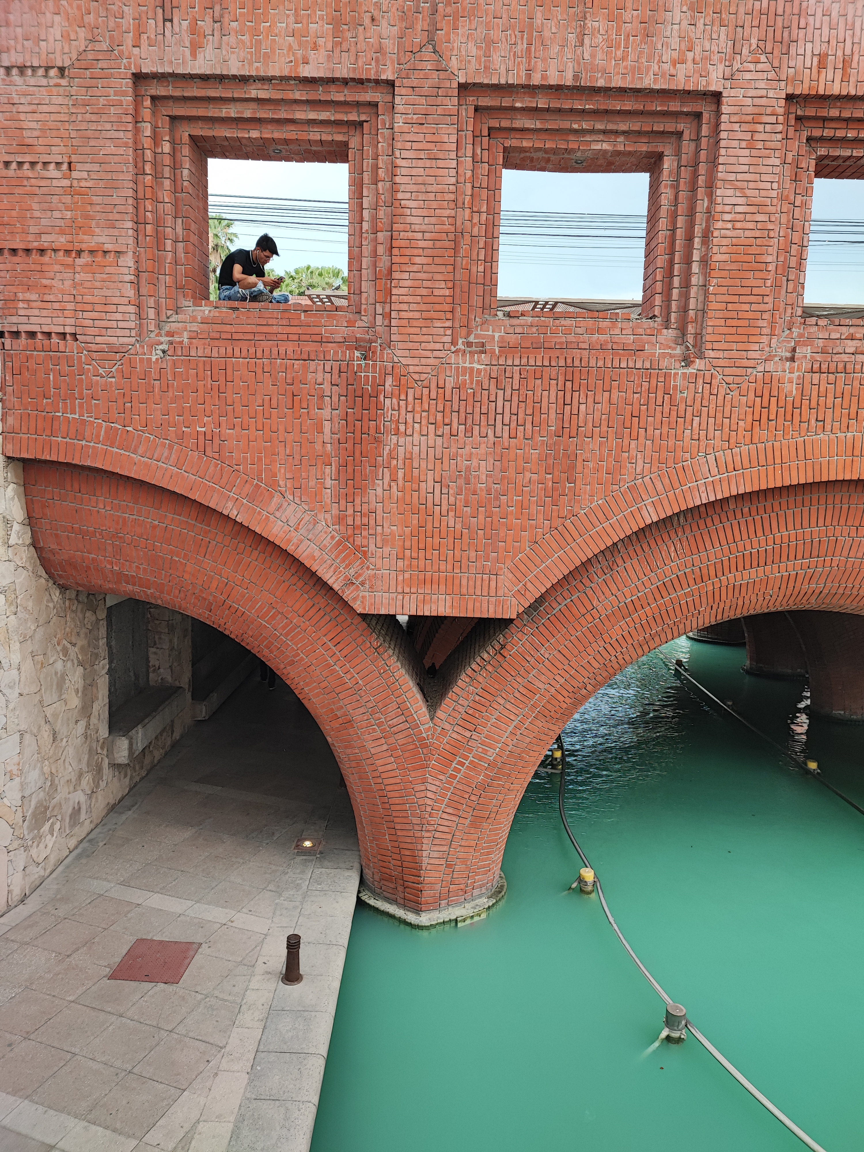 There was a young man sitting right on the frames of the bridge, he was listening to music and looking at his cell phone, so I decided to take a picture of him. I continued walking, to take some other angles of the bridge, the orange columns and the crescent-shaped design stand out. The last pictures are of the interior design of the bridge. All the writing and photographs are my own, the only thing that is quoted is taken from the internet. Thank you for reading and for your support.