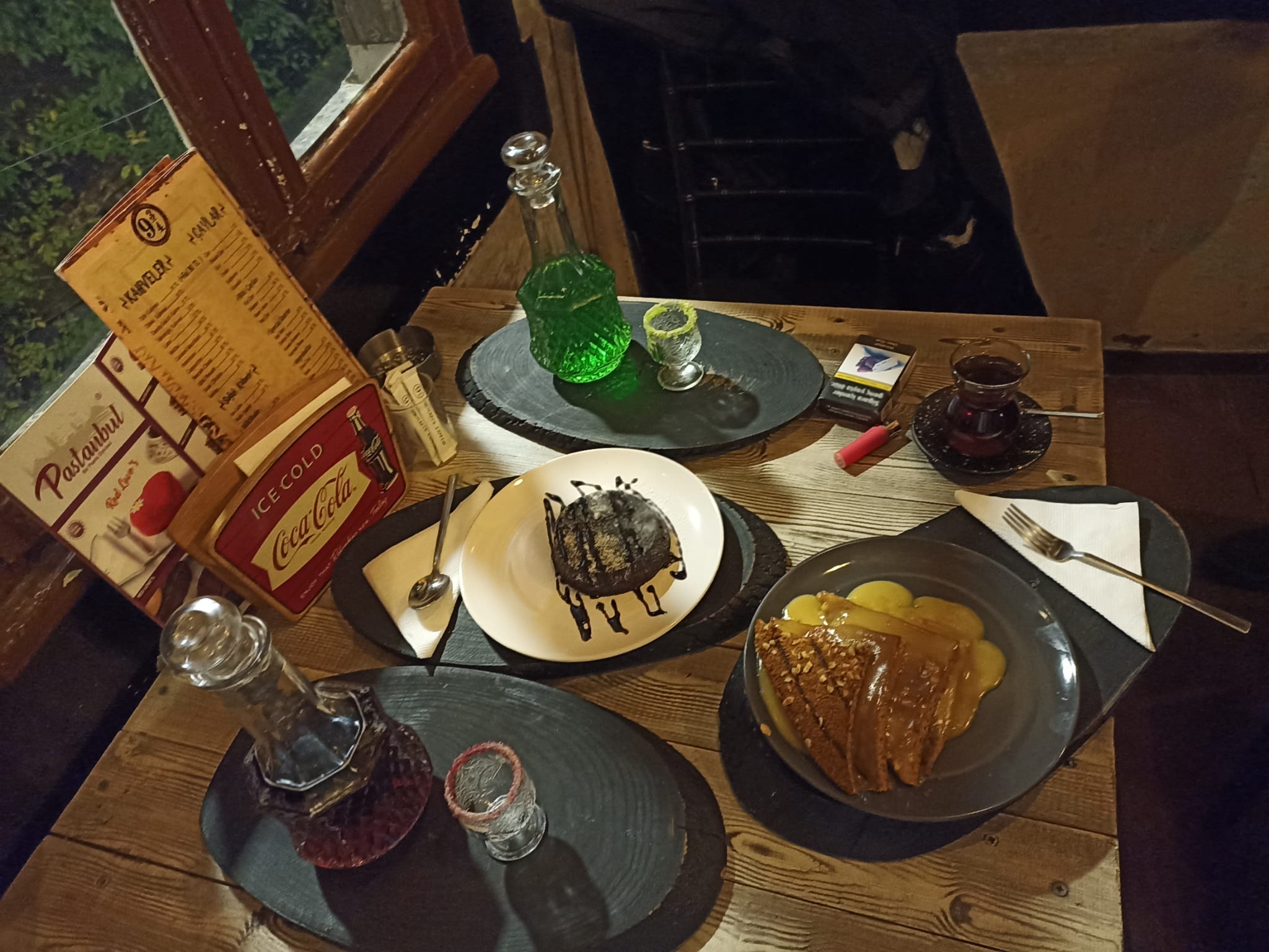 "Hogwarts Express" isimli kafe sahipleri inanılmaz güzel karşılayıp her yerde fotoğraf çekilmemizi hoşgörü ile karşıladılar. O kadar minnettar kaldık ki bir şeyler içmek yemek dışında sadece fotoğraf için bile gelinse kızamayacak kadar nazik insanlardı.. Önce fotoğraf çekilip sonra bir şeyler içip birer tatlı yemeye karar verdik.