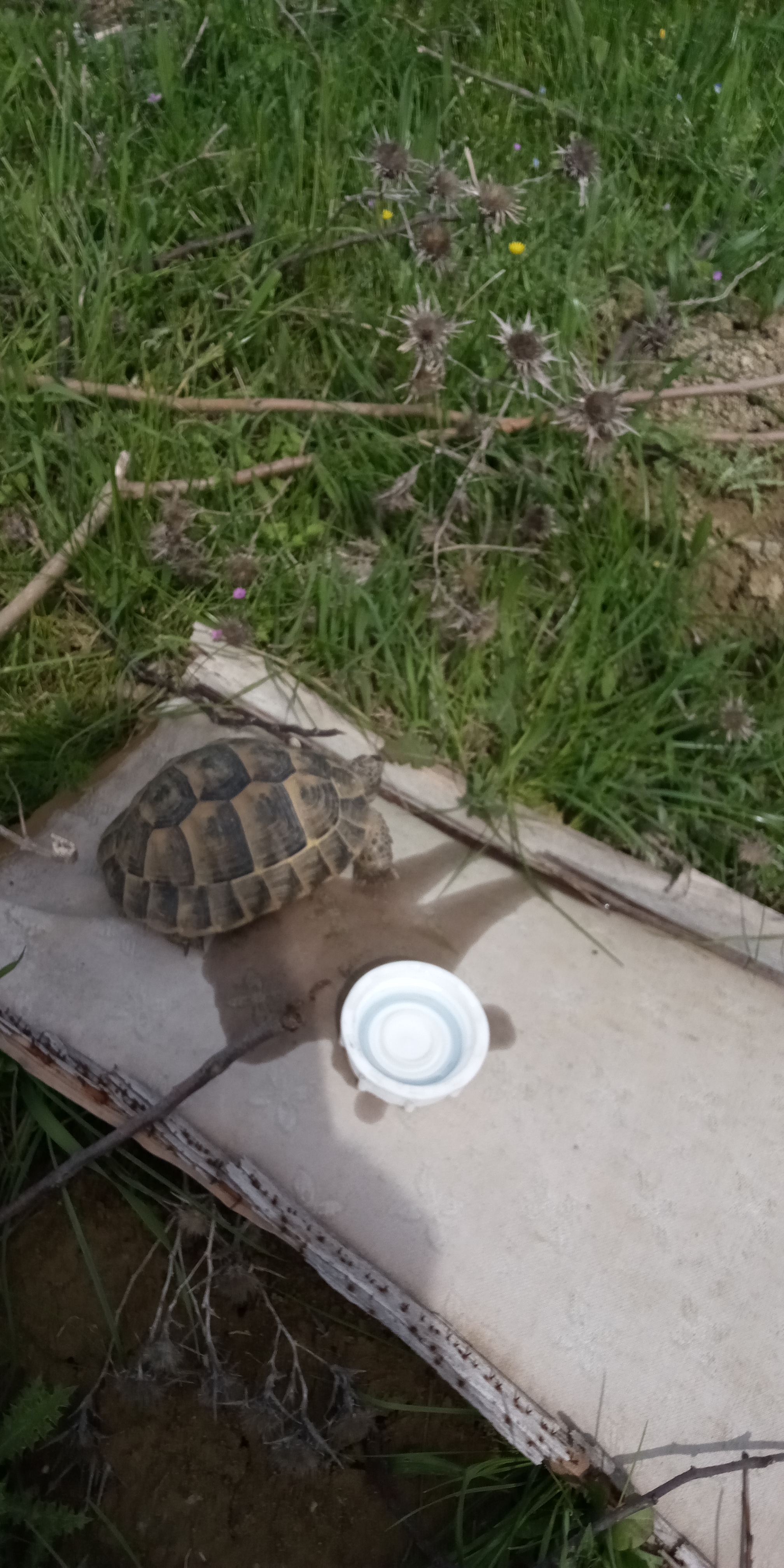 Daha sonra belki kaplumbağa belki susamistir diye bir tane plastik bidonun kapağının içine su doldurduk. Ama kaplumbağa hiç su içmek istemedi. Durmadan kaçmak istedi. Ben elimle tutuyorum geri getiriyorum, o tekrar gitmek istiyordu. Ayaklarındaki tırnaklar çok güçlüydü. Sonunda kaplumbağa galip çıktı.😁 Motor hızıyla kaçtı.Birde derler kaplumbağa yavaş diye ama maşallah çok hızlıydı.