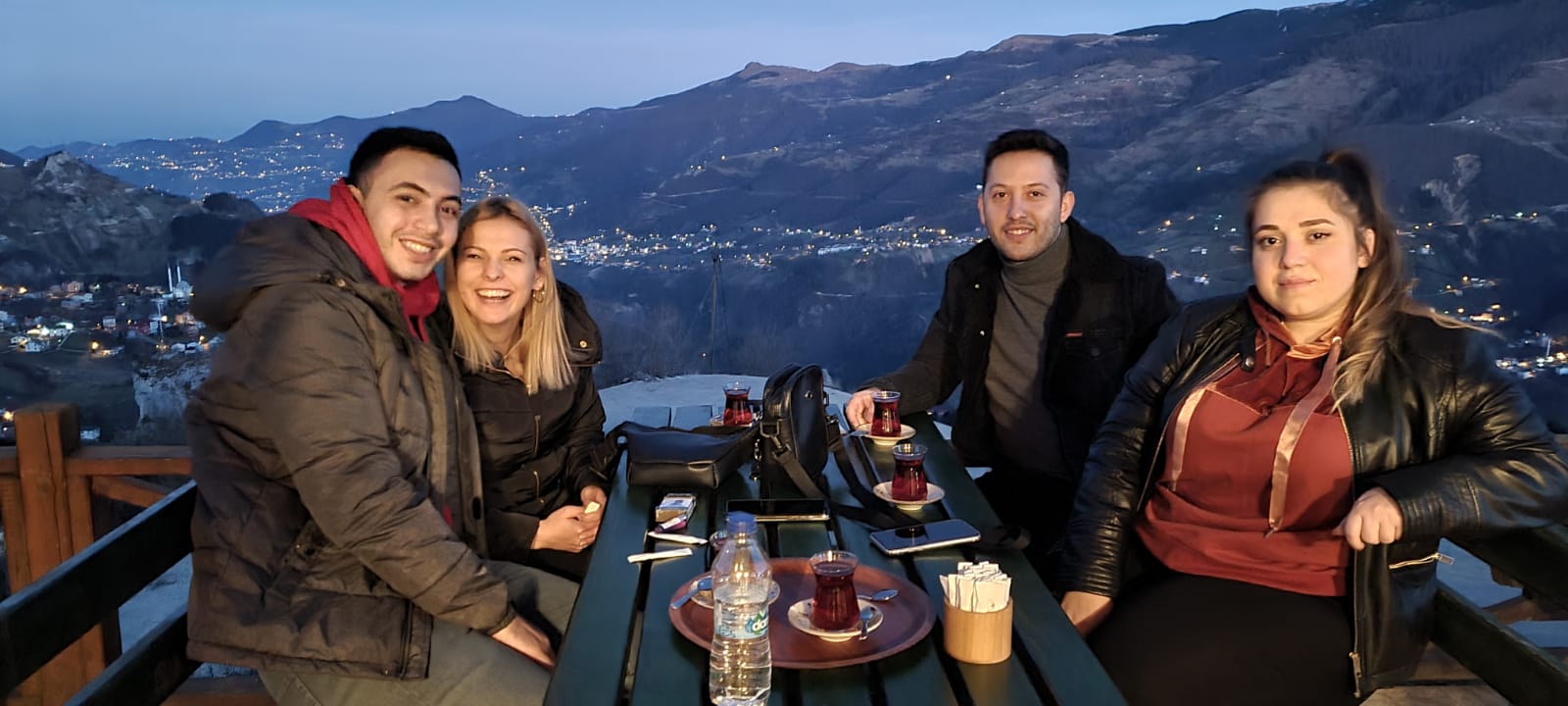 Yakınlarda bulunan sıcak ve dağ konsepti ile kendisine hayran bırakan kafeye oturduk. Çayımızı içerken hem manzarayı hemde sohbetin tadını çıkartıyorduk.