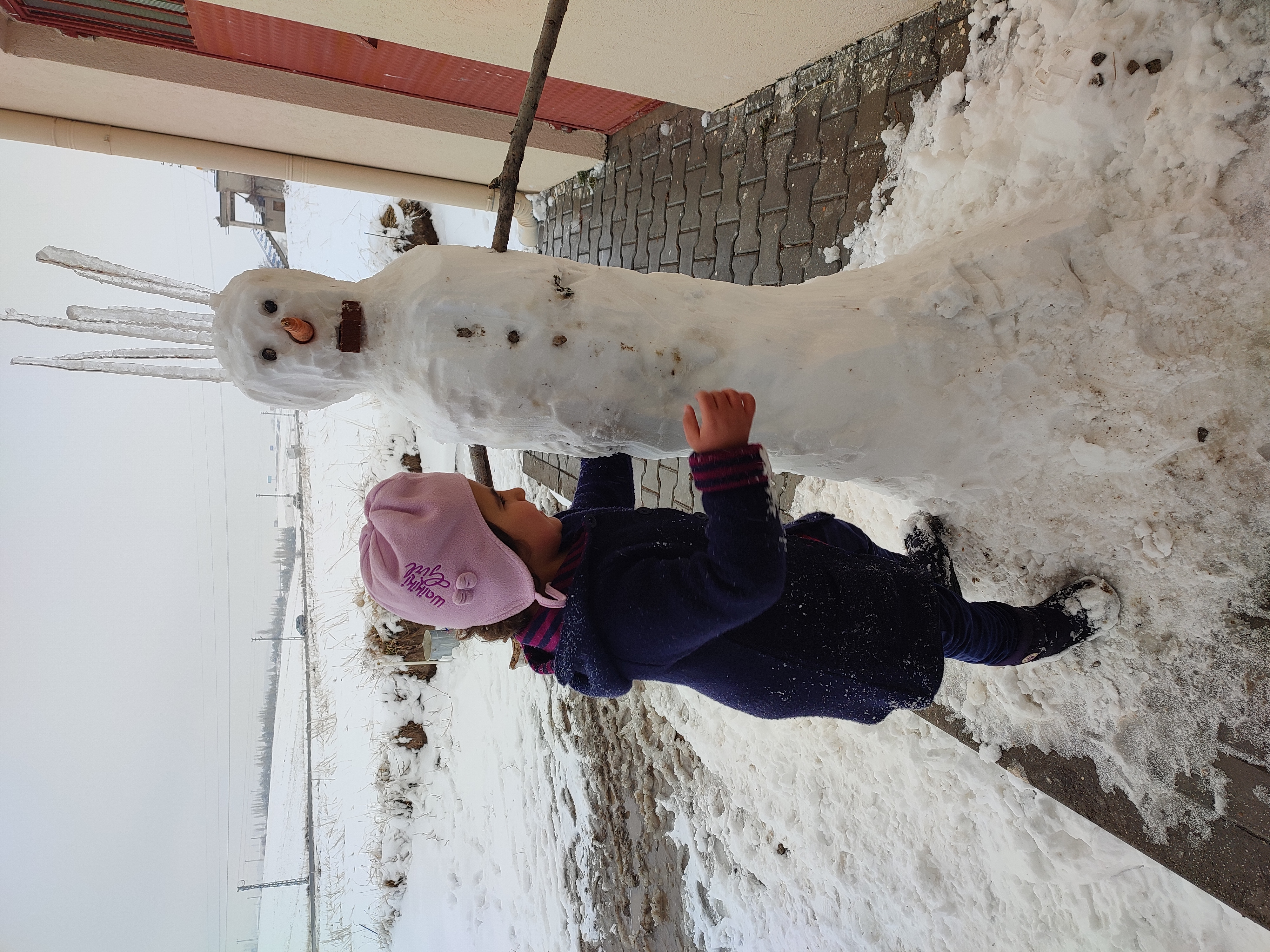 Kar encokta çocukları sevindiriyor.Sabah kızım uyanınca karı gördü çok mutlu oldu.Kahvaltisini yapıp babasıyla kardanadam yapma hayaliyle bahçeye indiler.