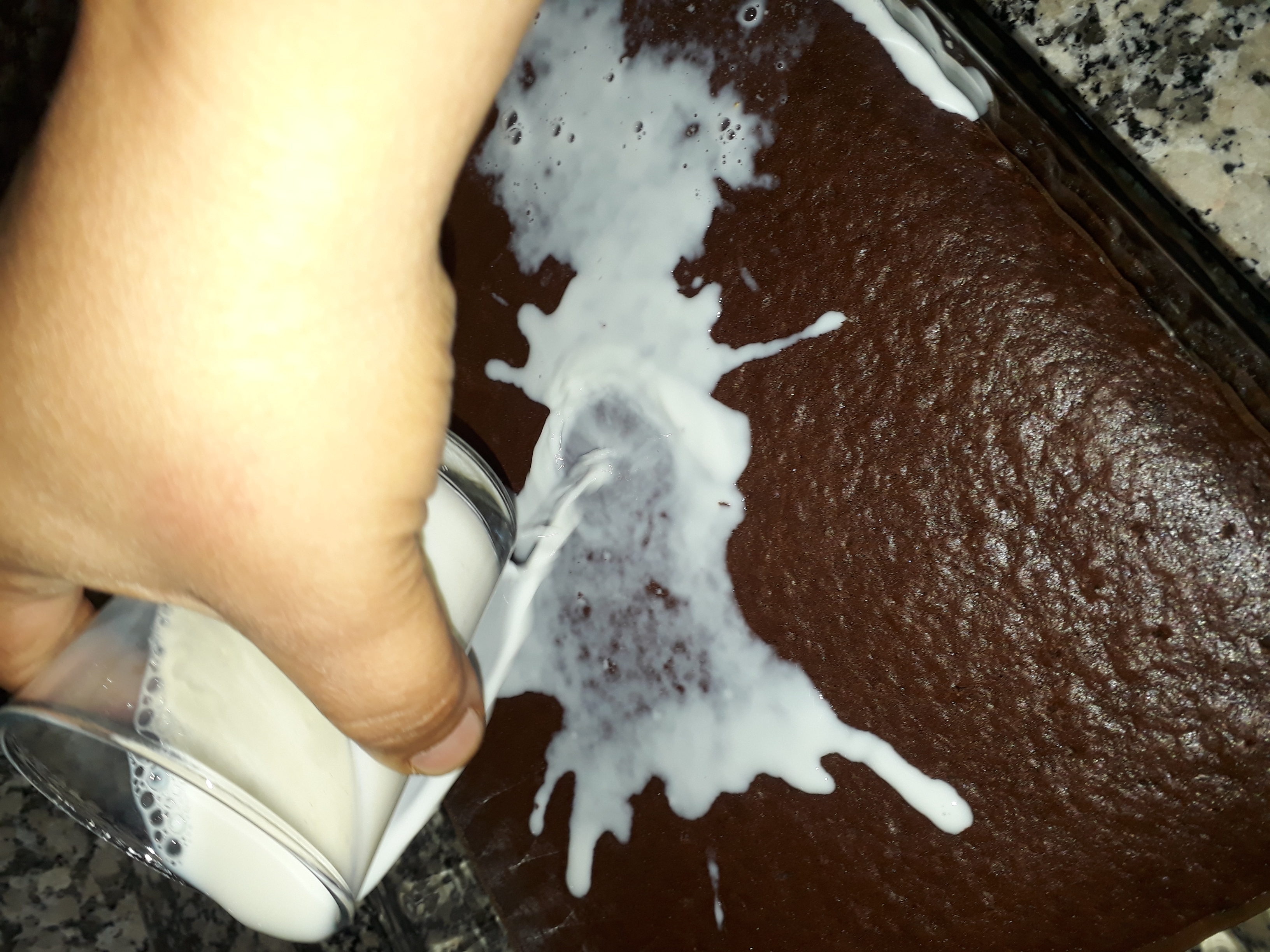 Buzdolabina atıp sogumaya bırakıyoruz pisen kekimizi cikarip uzerine 1 bardak süt döküyoruz