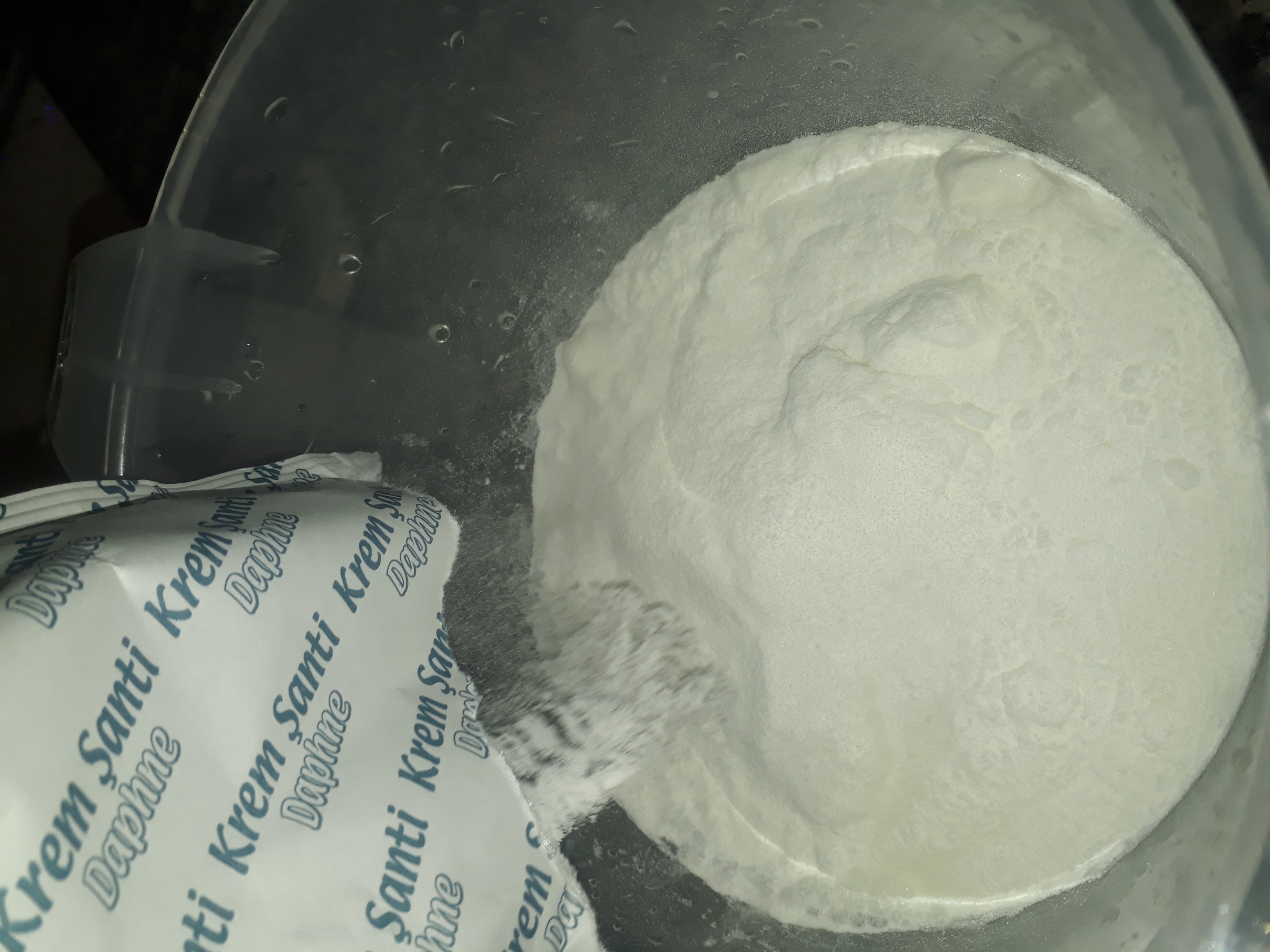 Şimdi kremaya gecelim süt ve krem santiyi iyice çırpıyoruz