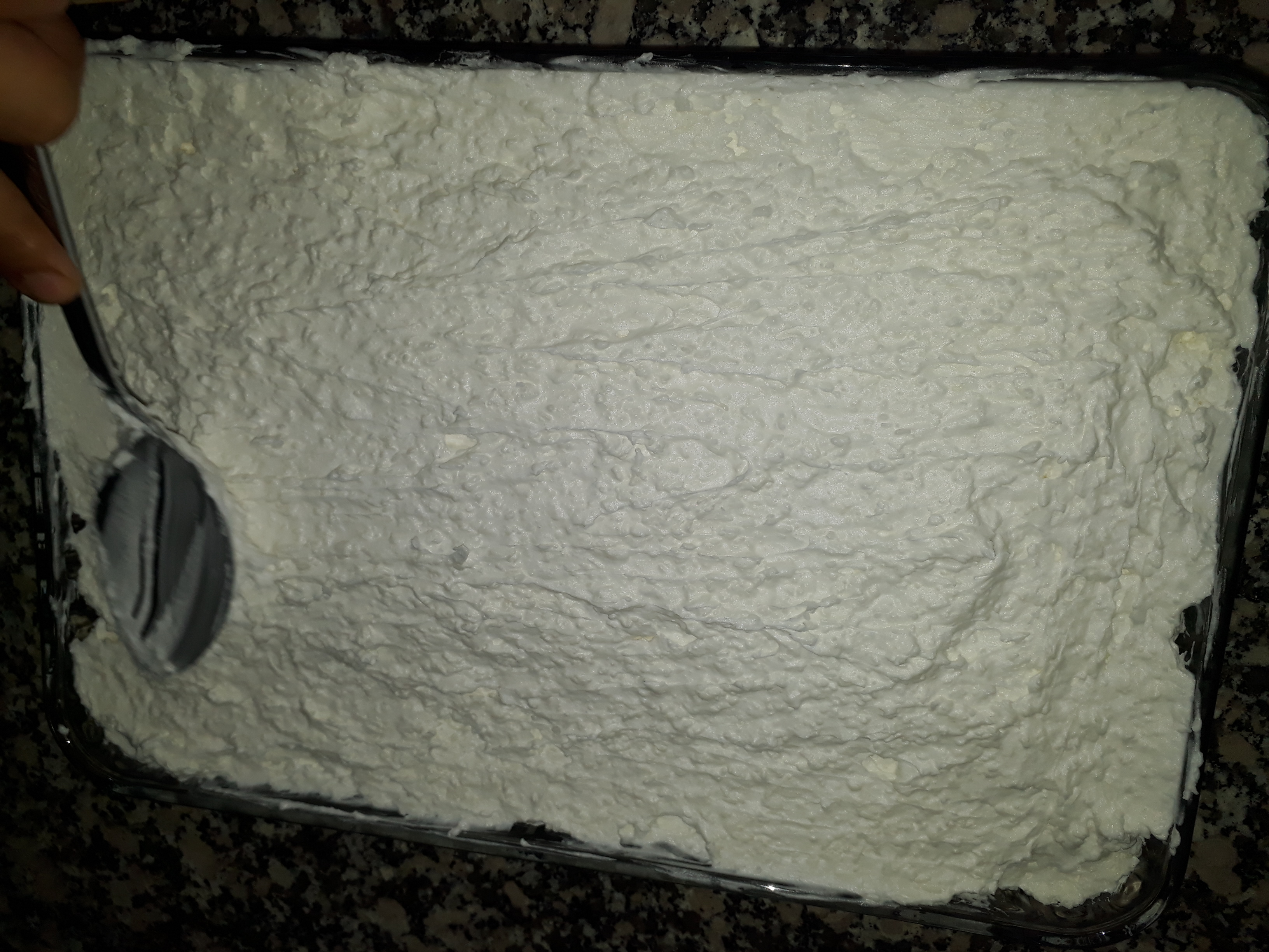 Daha sonra kremayı cikarip kekin uzerine yayıyoruz