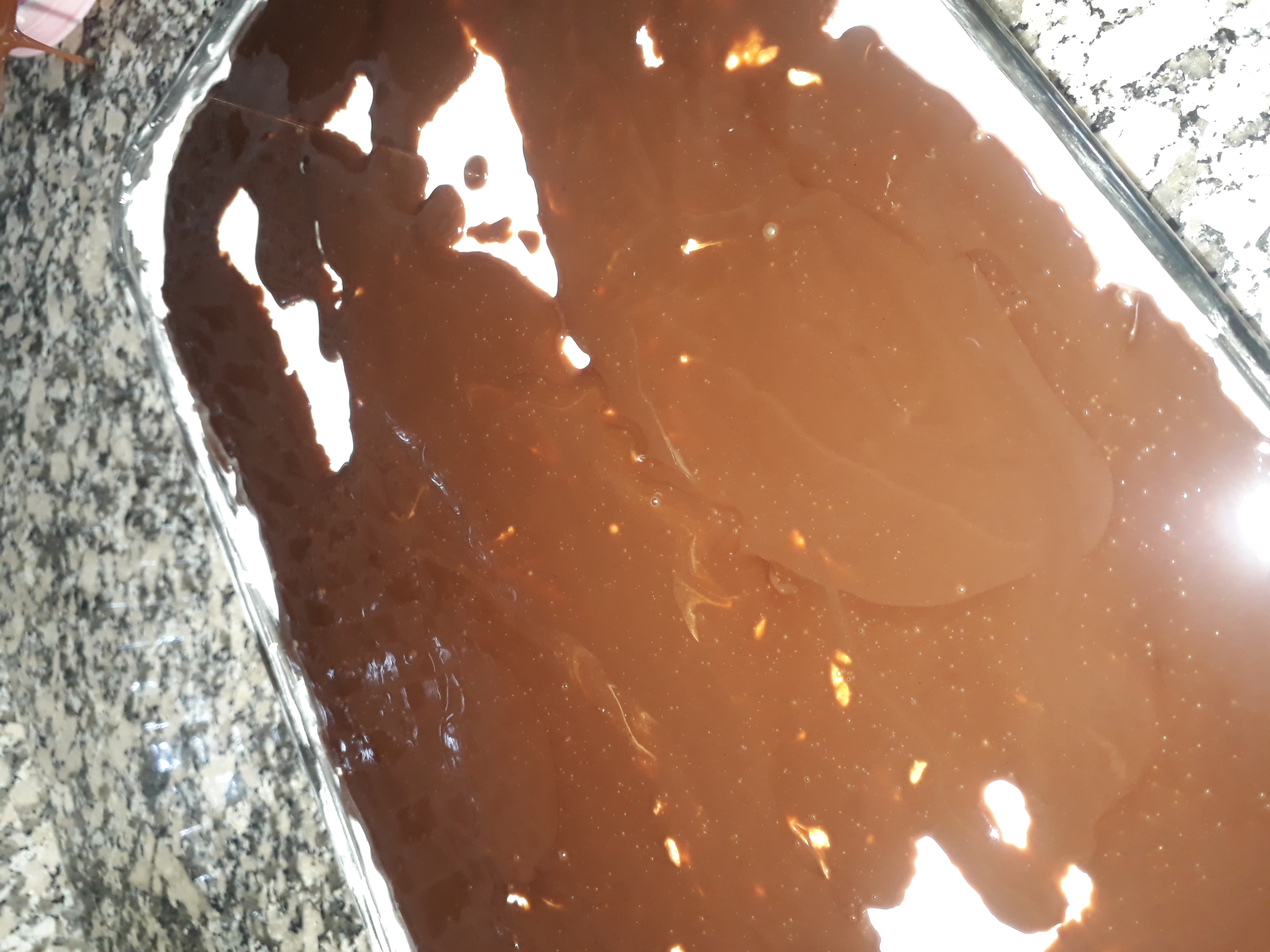 Krema ve cikolatamizi ocakta eriyene kadar pisirdikten sonra pastanın üzerine gezdiriyoruz