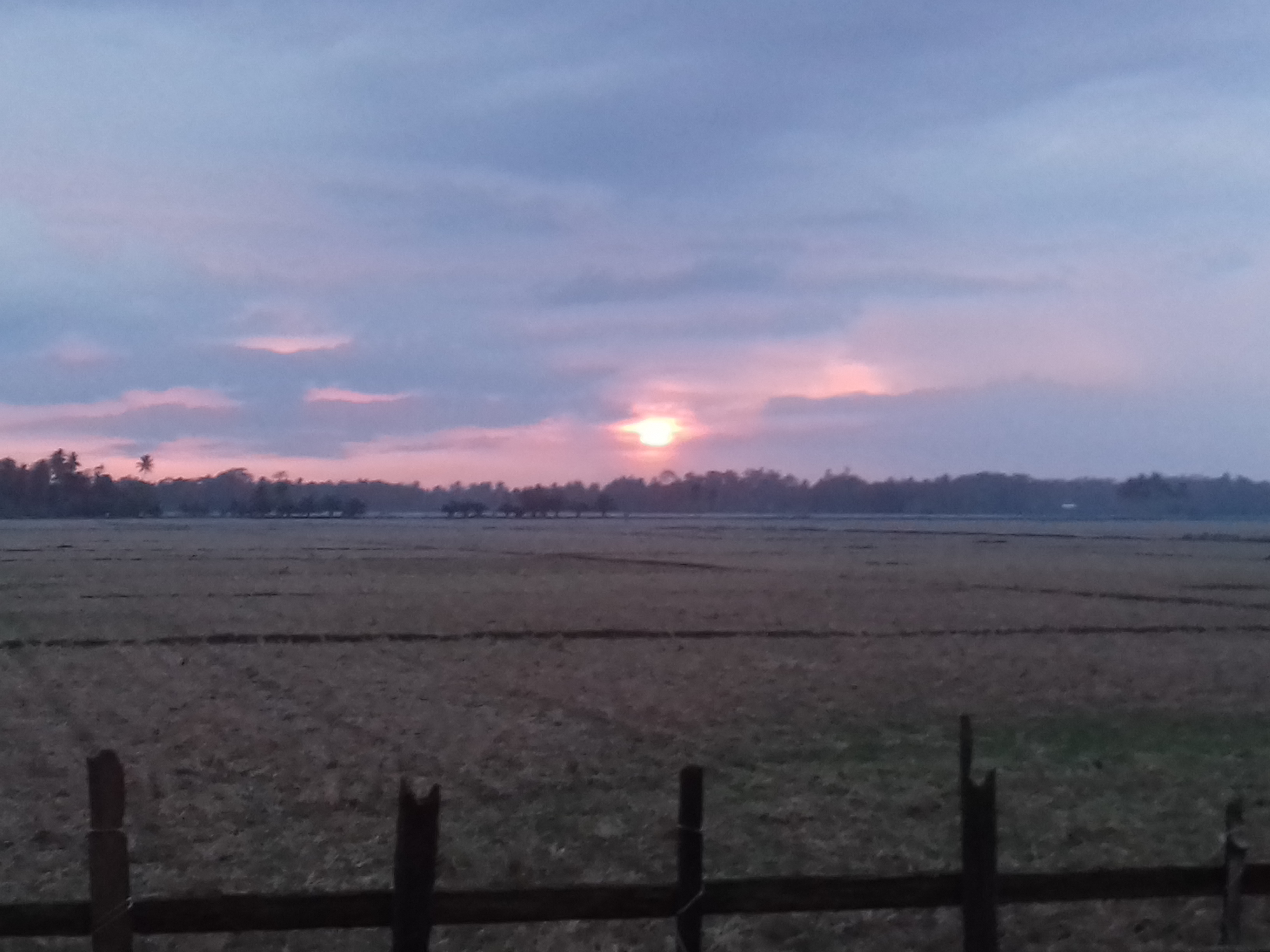 A beautiful sunset that takes place after a rainy afternoon, so clear and bright as if the eyes did not blink to see it with such beautiful color. The sunlight is blocked by the mountain, so that it rises to the sky to make the color purple orange yellow. The incredible beauty that I capture in the camera smartphone.