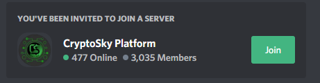 We have paid a fee in some cases to obtain a lifetime membership, this means we can have our own exclusive ACOM presence in the associate Discord server. One of our Discord Partners is the CryptoSky Platform.