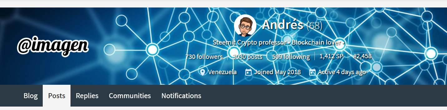 Sure @acom, I know @imagen as a Steemit Crypto Academy professor, his classes are of high quality and I've been learning a lot.