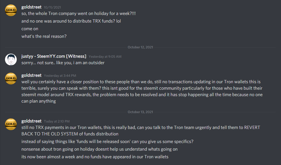 Tron's On Holiday So No TRX Funds Can Be Distributed! Not Acceptable!