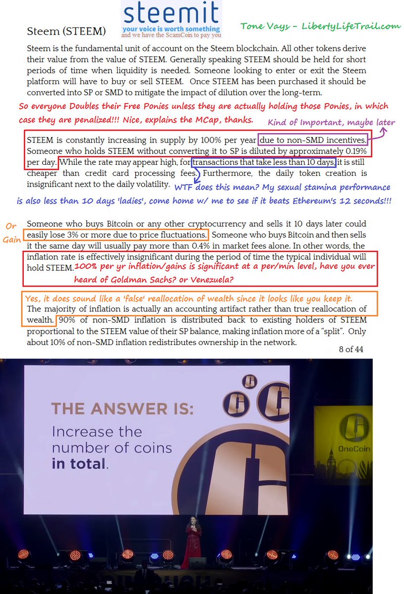 6 of XX: #Steem/#Steemit will only 2x your coins if you Don't hold them, unlike #onecoin, & "less than 10 day txns"
