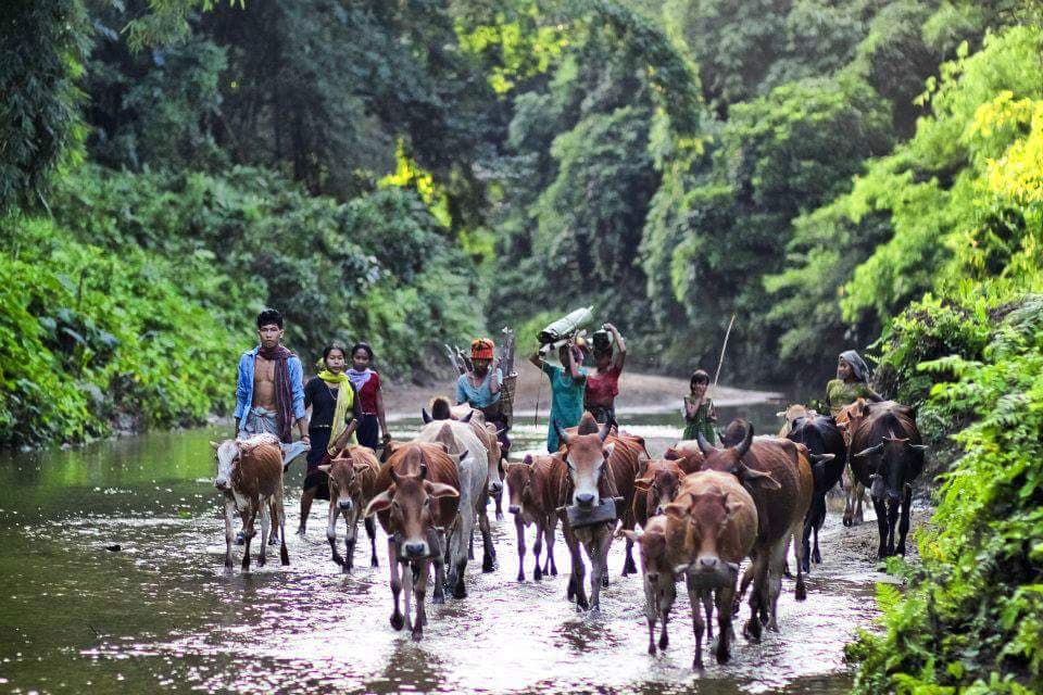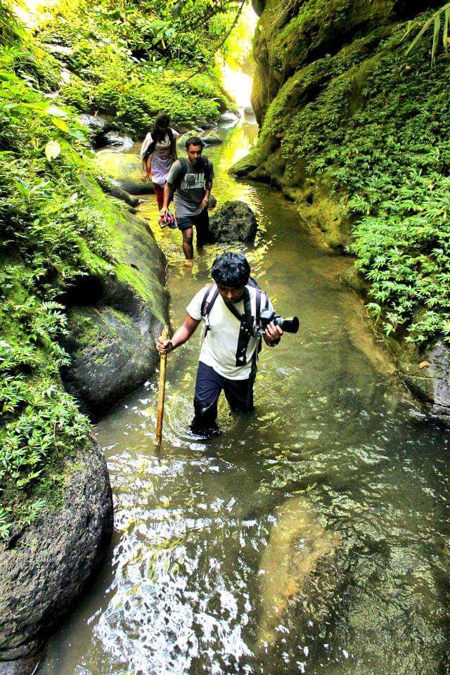 Somewhere, there is clean water coming out from the cracks of the mountain, bamboo, bamboo water, like water in the mouth of the bamboo, if you want to drink or take the water bottles. When the sunrise is covered with large stones and trees, Somewhere in the hills, the dead tree is like a bridge, then you have to cross over it. Again the big stones are there, the water below it, it will have to be broken down. Knee water somewhere in the corridor somewhere deep in the water and the water was somewhat deeper, the places were going up to the mountains to cross.