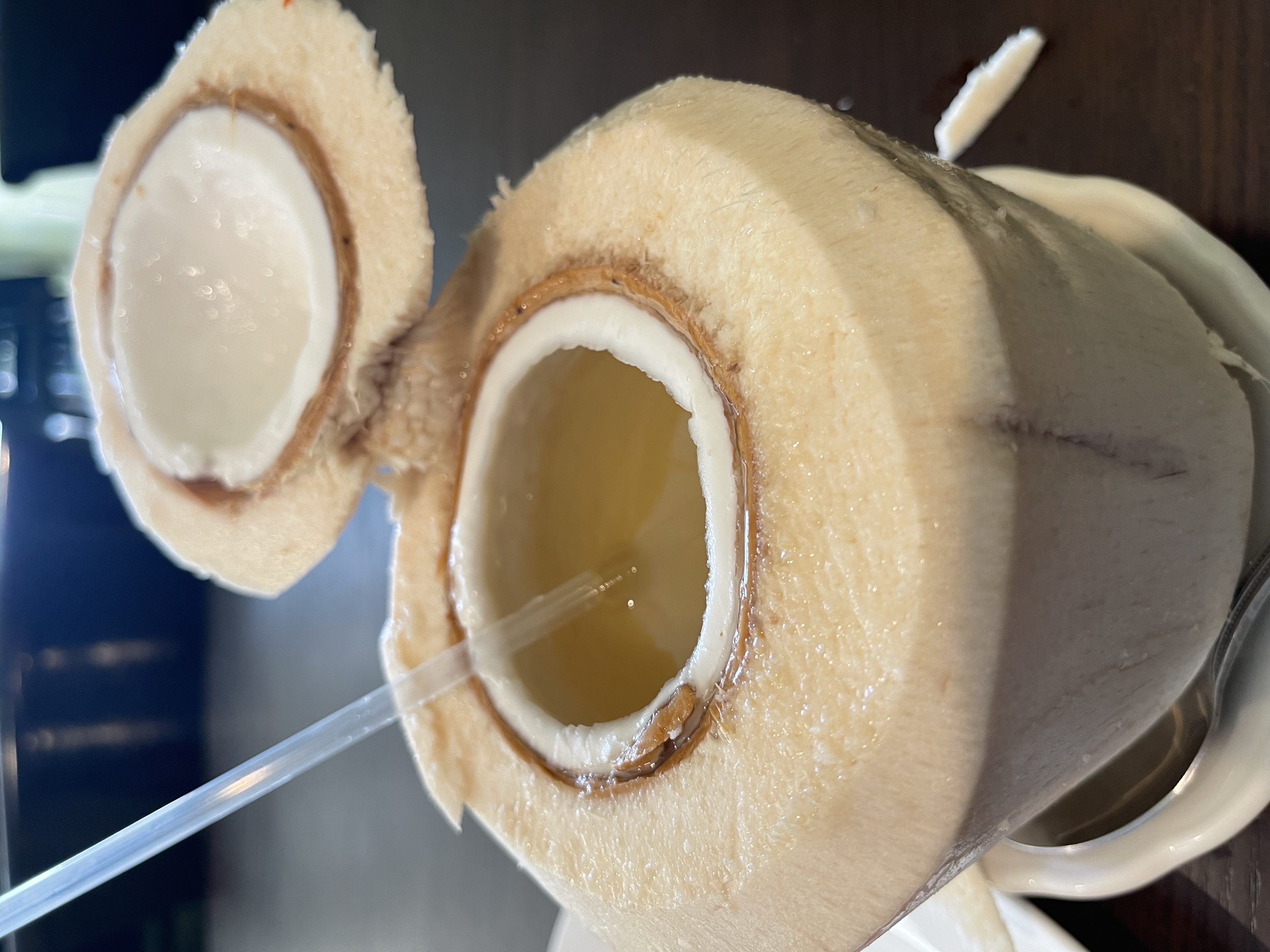 The view of the Young Coconut, but the outer skin has been chopped already coz it hard and colored yellow green.