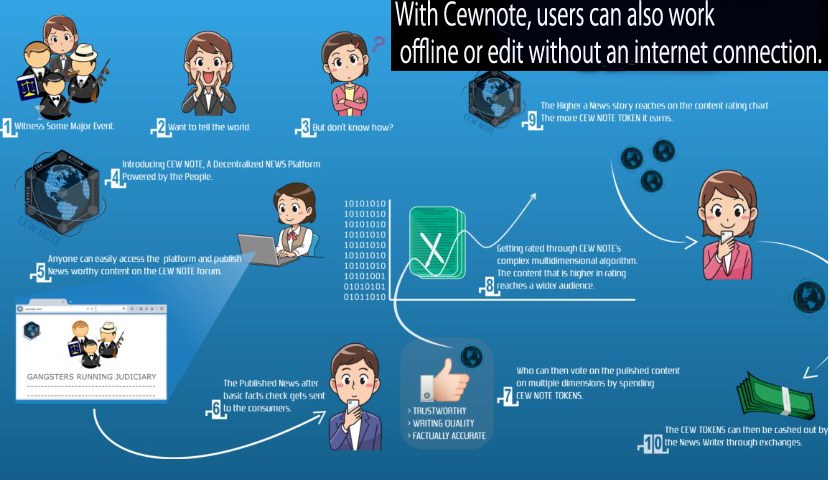 Keeping in mind the ultimate goal of knowing how Cewnote works, you must remember that Cewnote is a distributed news platform created only on the Ethereum block chain. In accordance with this policy, everyone can submit articles to be evaluated by unknown sponsors without asking for certain beliefs. In a follow-up survey, fans will review the article to ensure that the article follows a set of articles published in the system. All news distributed on Cewnote is replicated through a special hub network and is publicly available. Authors, writers, analysts and distributors are ready to take tokens proportionately with their positive contribution to the platform. Mobile applications have been developed to provide efficiency on the platform.