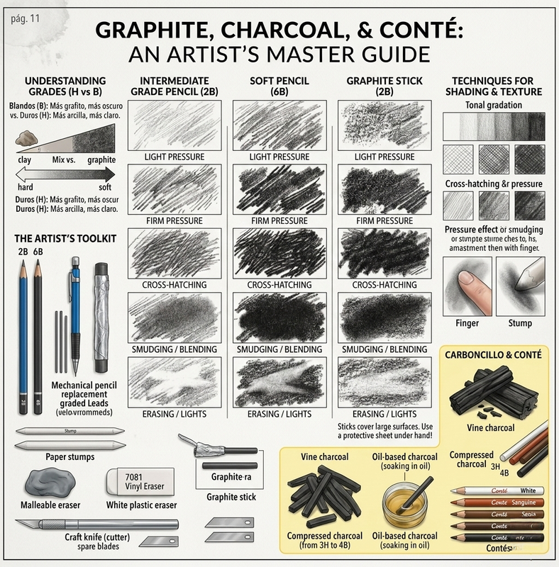 Grade Layering: Start with a hard lead (2H or HB) for the initial mapping. Never rush into the dark tones.