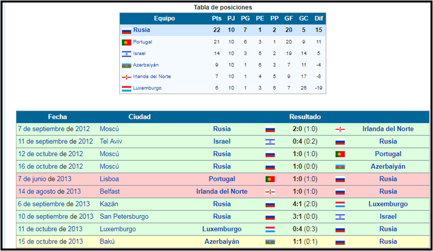 Su Eliminatorias Obtuvieron el siguiente Resultado.