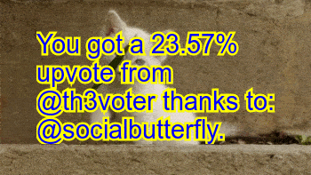 You got a 23.57% upvote from @th3voter thanks to: @socialbutterfly!