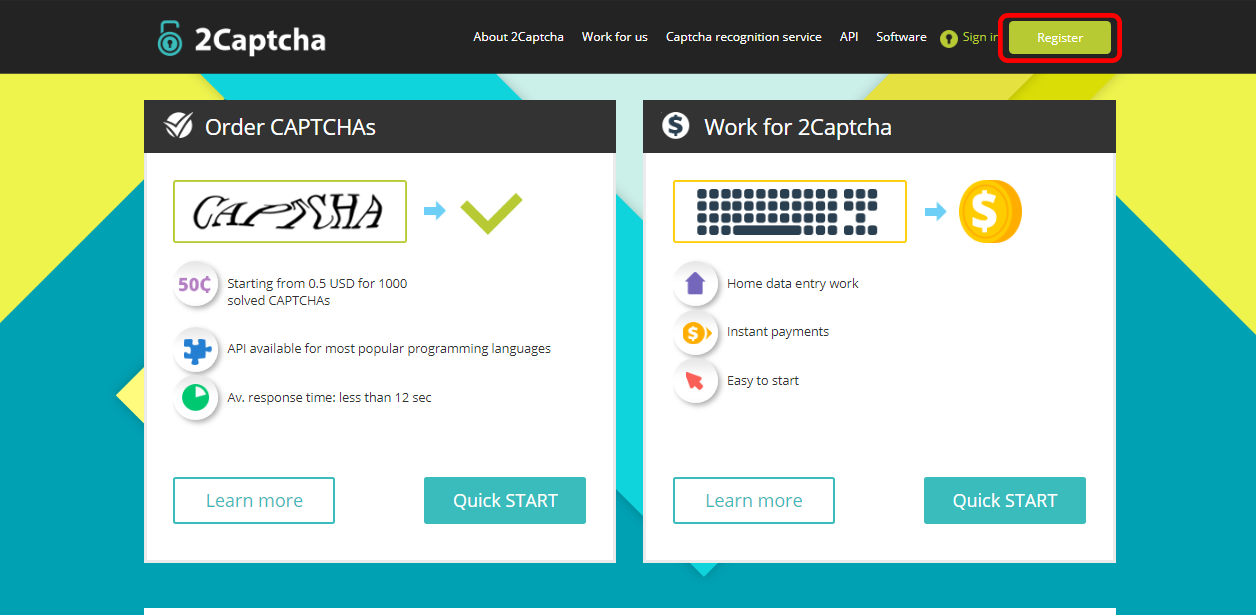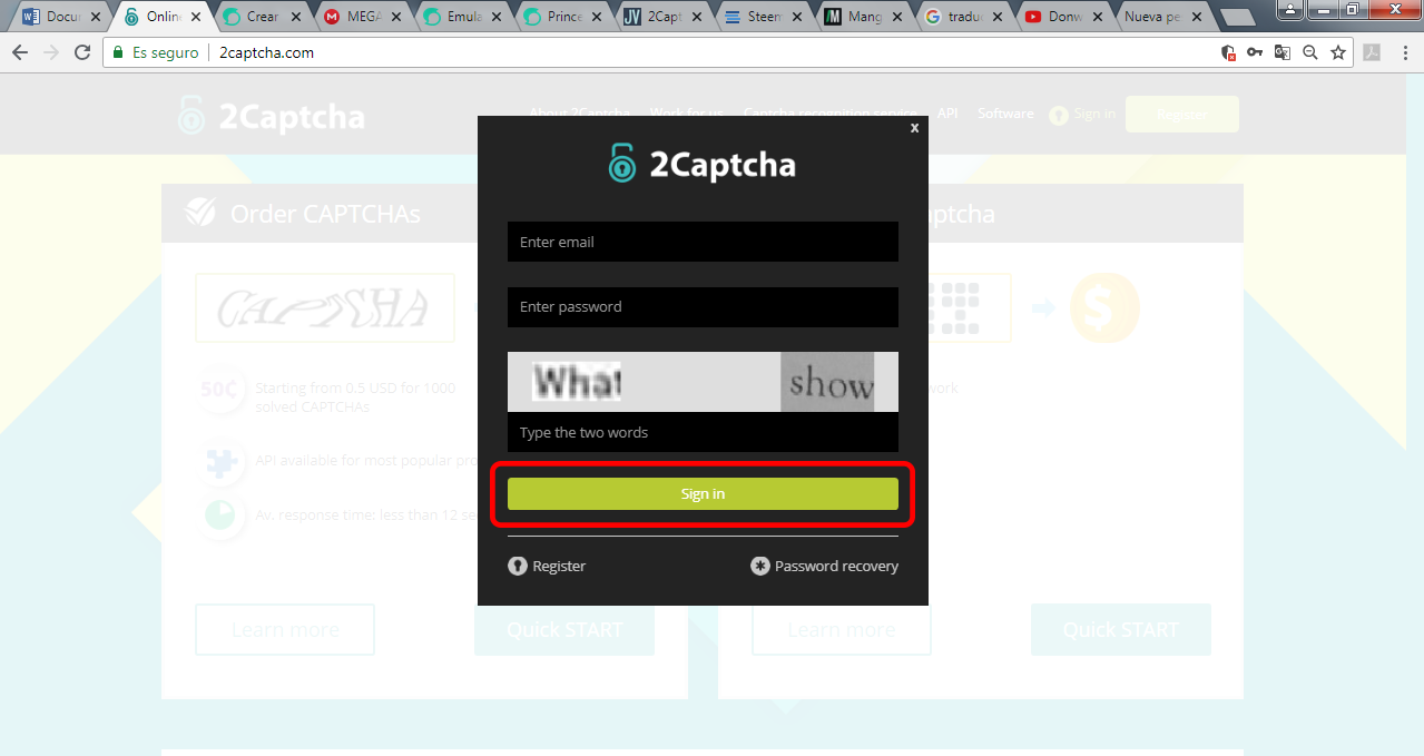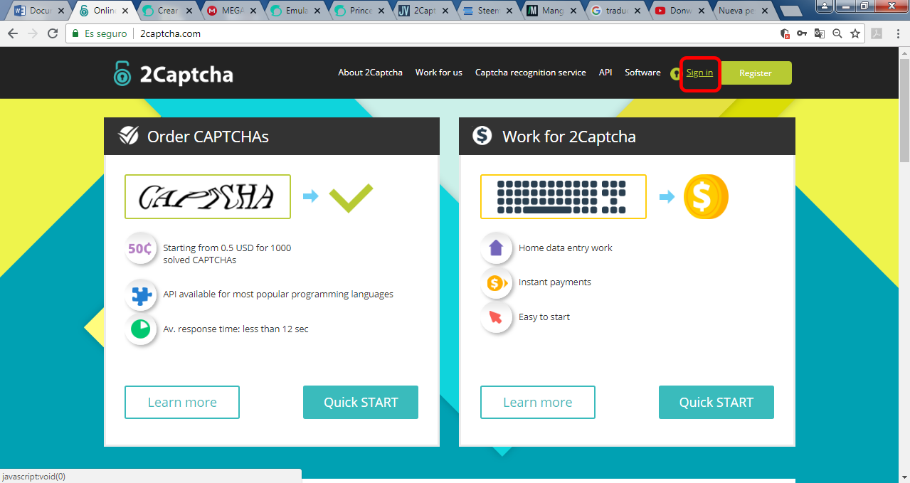 Enter the page of 2captcha and click on "Sign In".