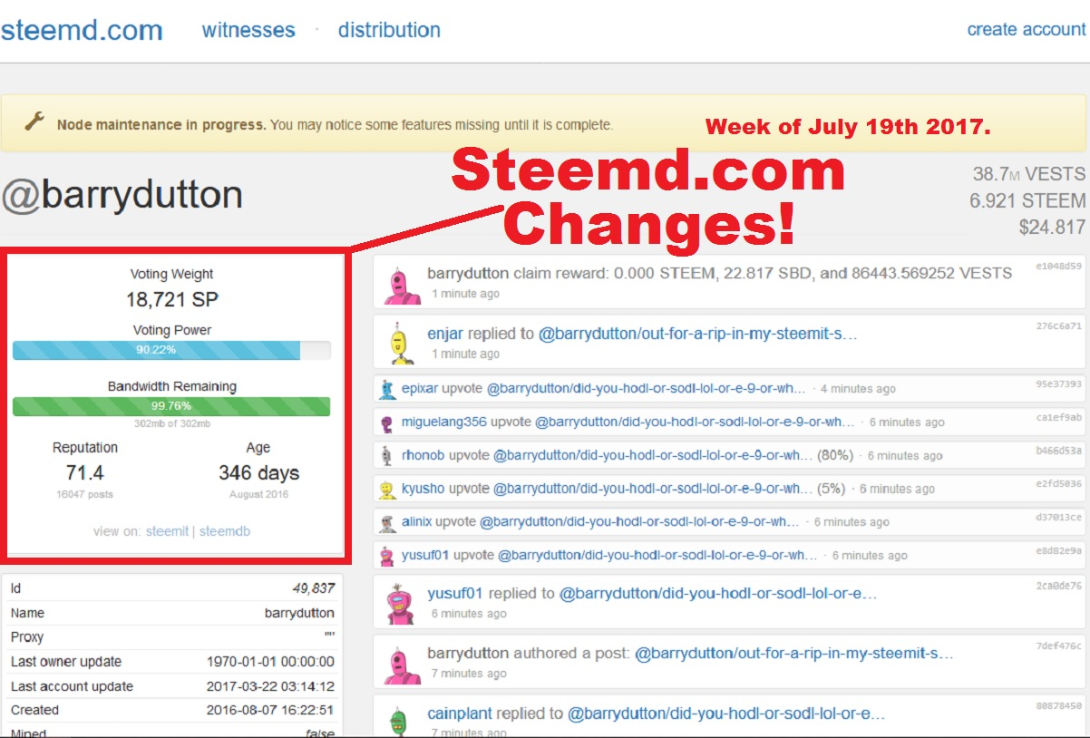 - the new SteemD.com is a little cleaner, with some extra features -- here is a quick screenshot of my page and then a screenie I made a few mths ago, when the changes came out, you can see that:
