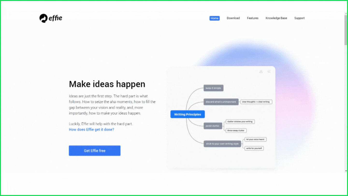Effie is an authoring tool that helps you organize your message. It has clean and clear content with many excellent features such as unobstructed writing, area style, writing and mind mapping.
