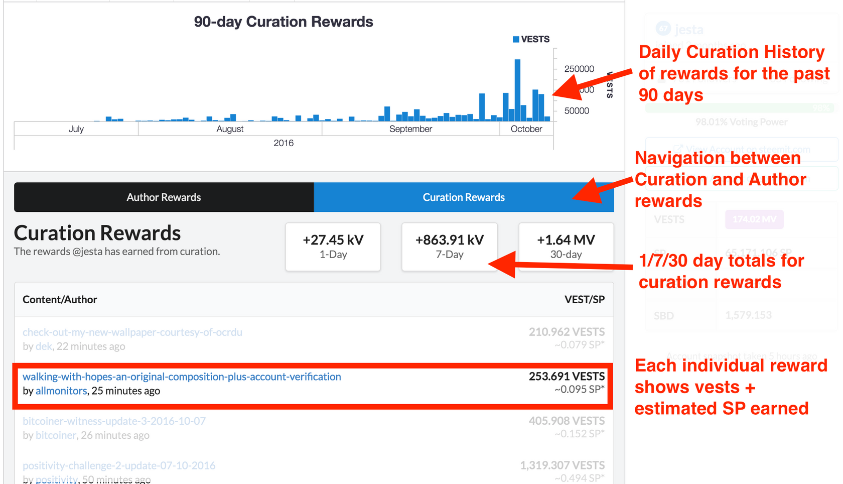 This one is very important to keep track on how much you receive from steem from your posts and comments!