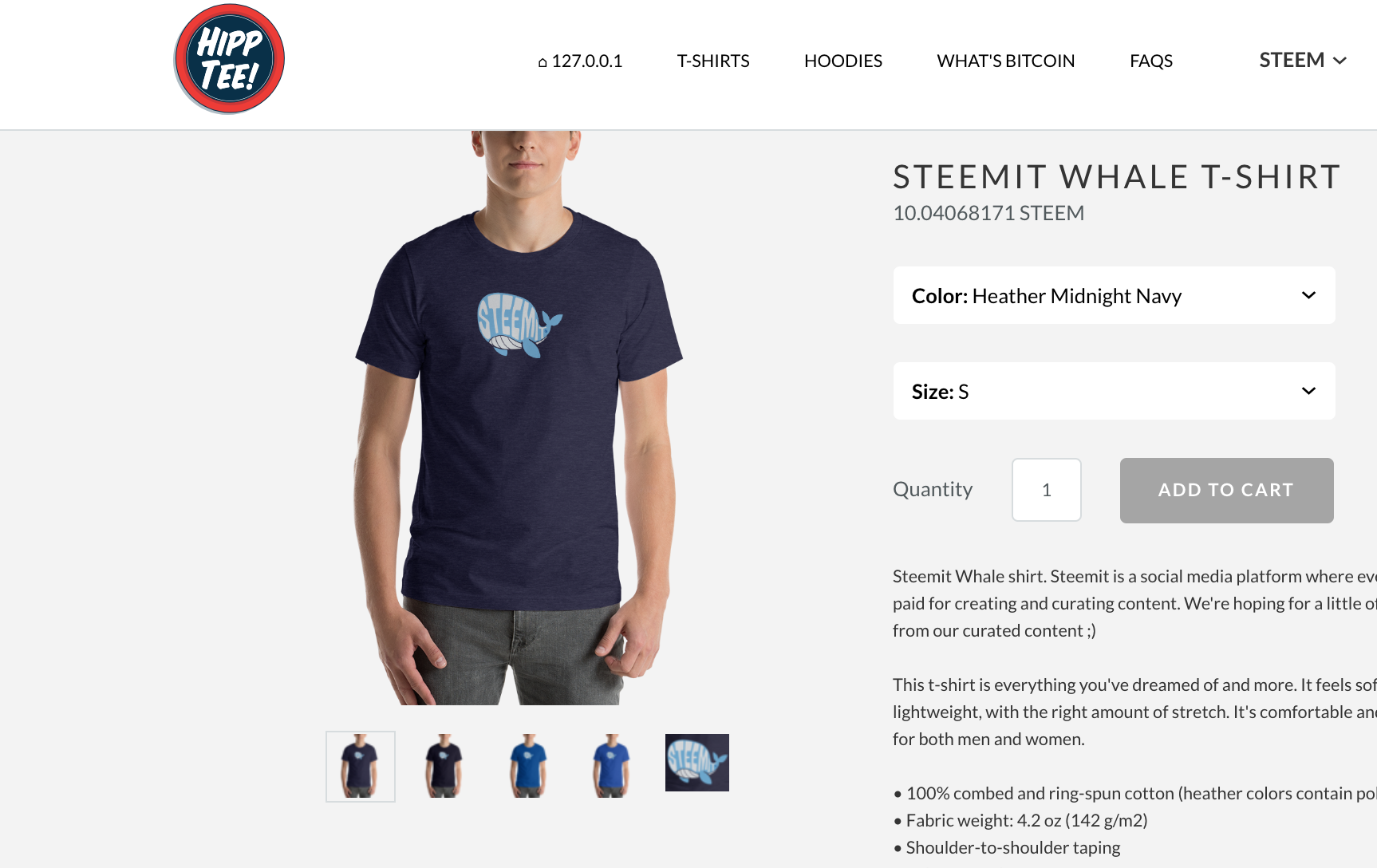 Once of the ones we added today was our STEEM support, purchases can now be made in STEEM. And to make it a little extra special we just had to time it with the release of our Steemit Whale T-Shirt