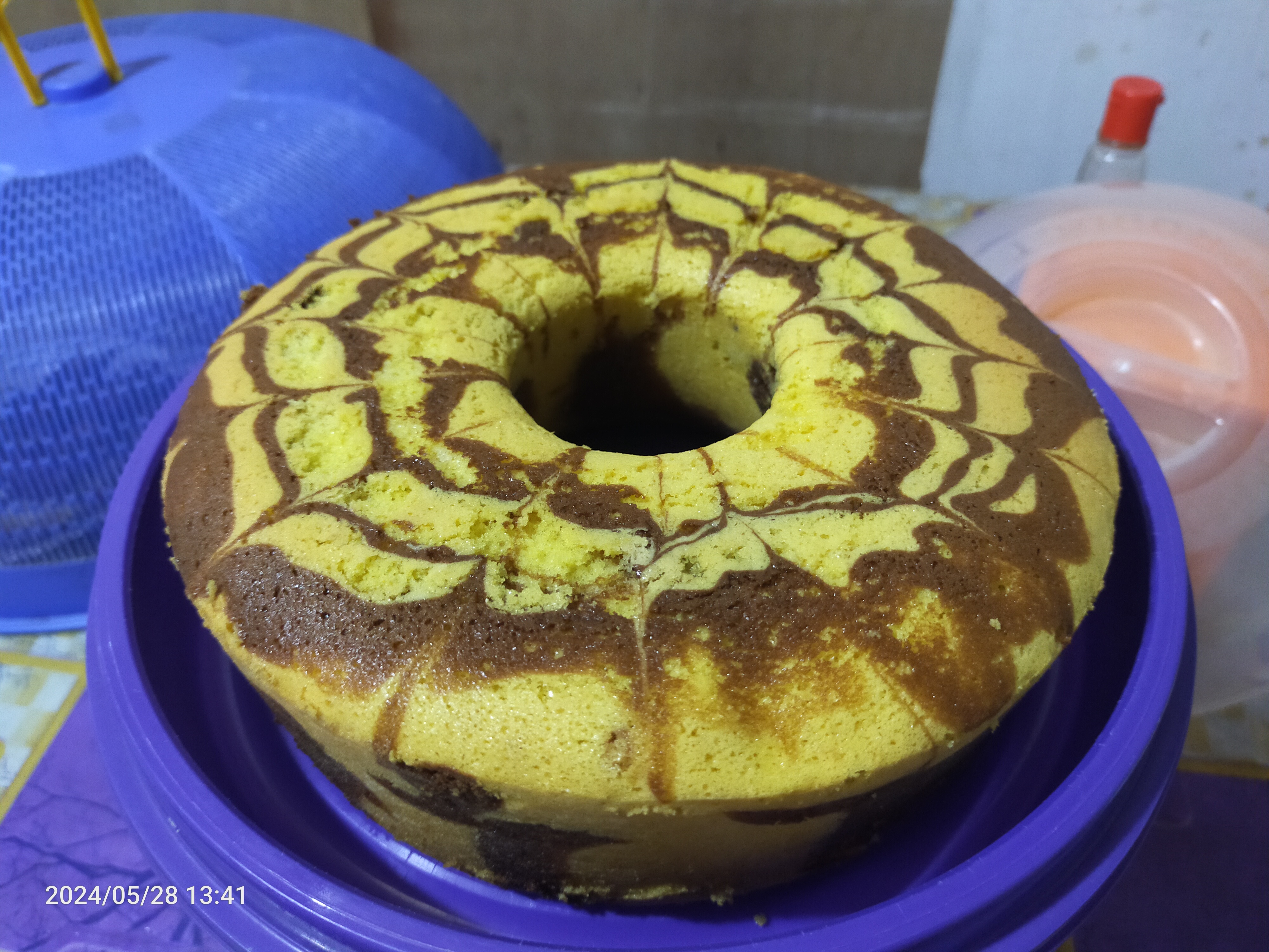 Cek kematangan dengan menggunakan tusuk sate, jika tidak ada adonan yg menempel, tandanya bolu sudah matang.